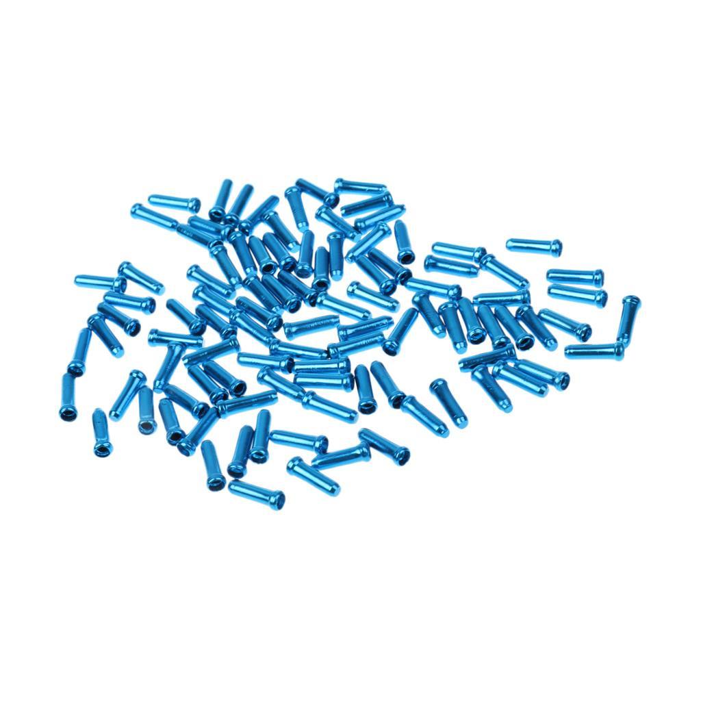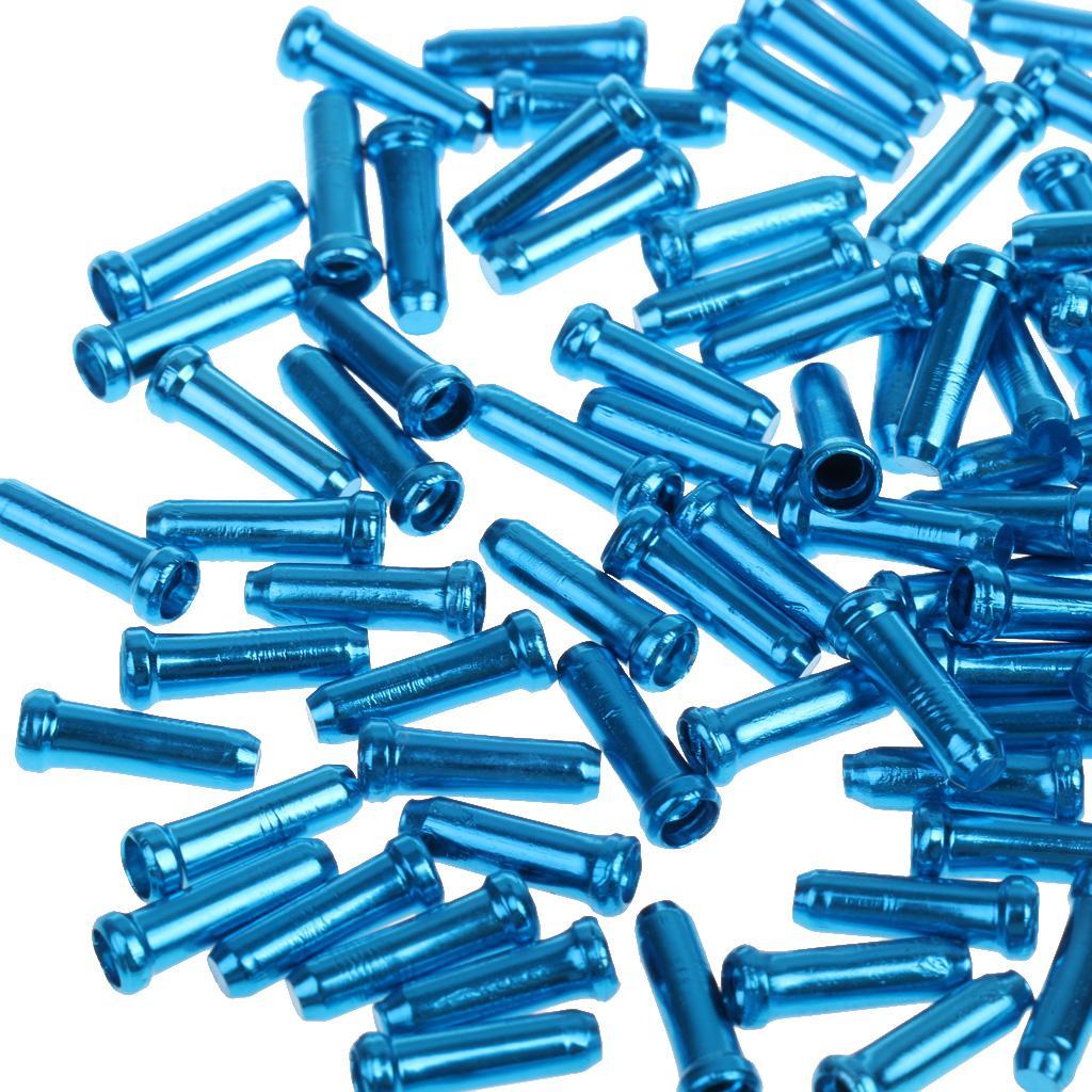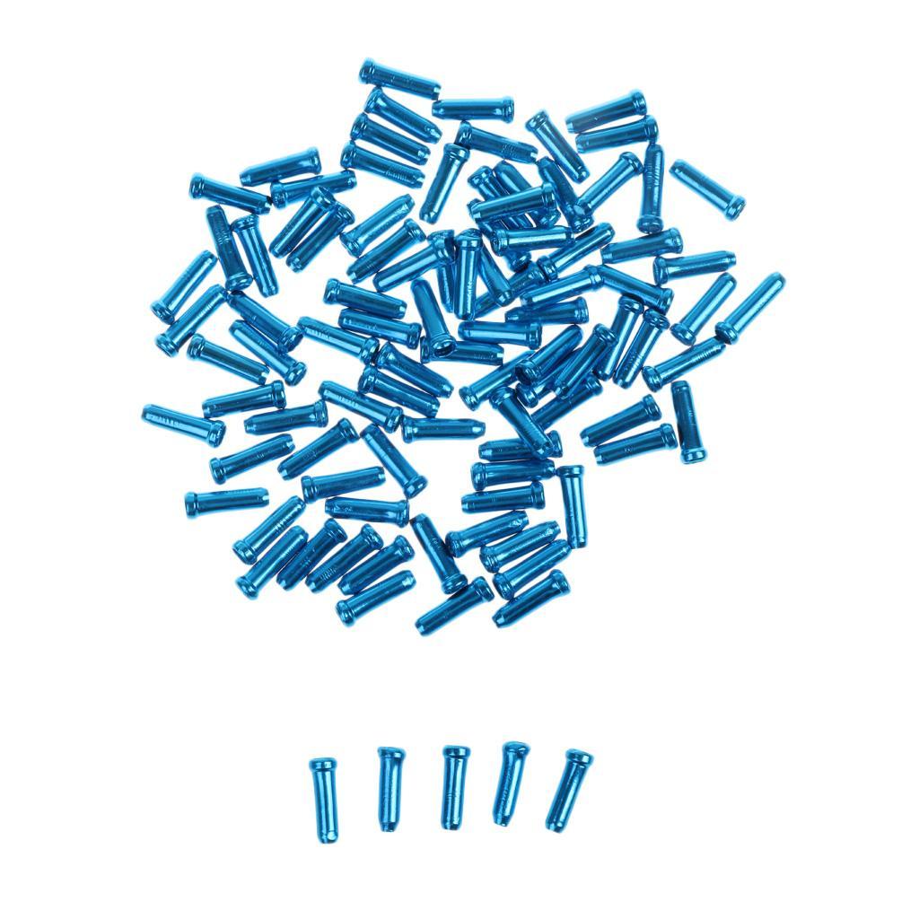 100pc Aluminum Bike Bicycle Brake Shifter Inner Cable Tip Wire End Cap Blue