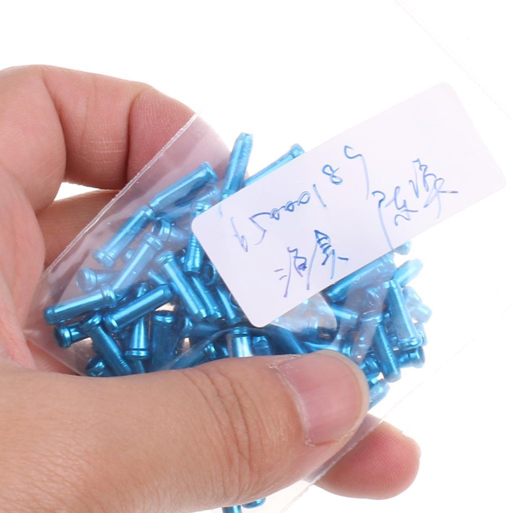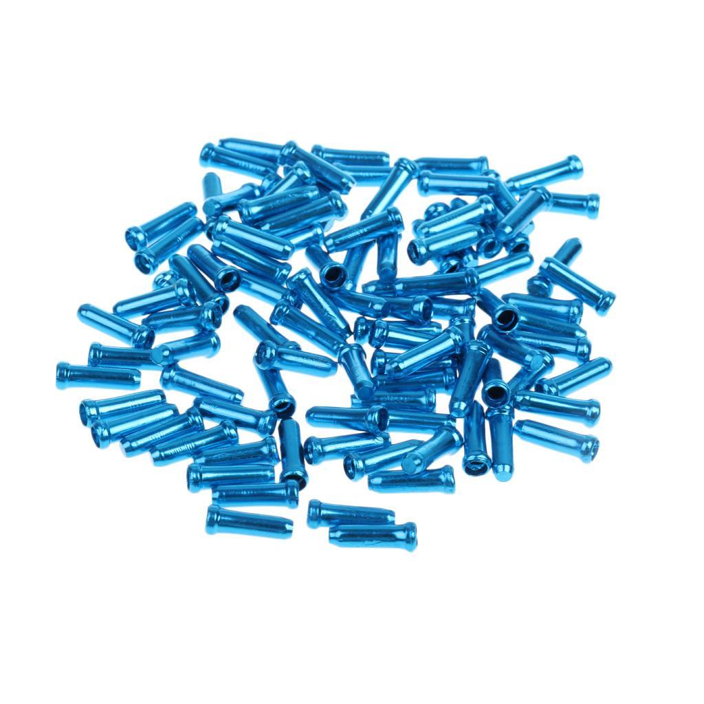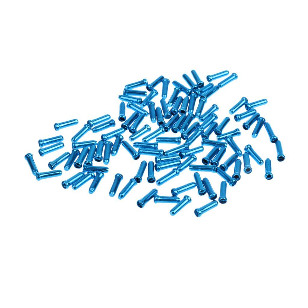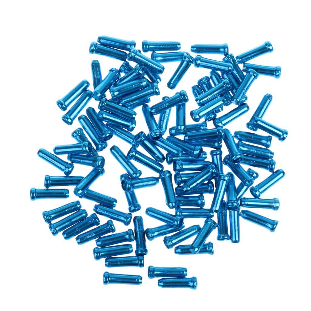 100pc Aluminum Bike Bicycle Brake Shifter Inner Cable Tip Wire End Cap Blue