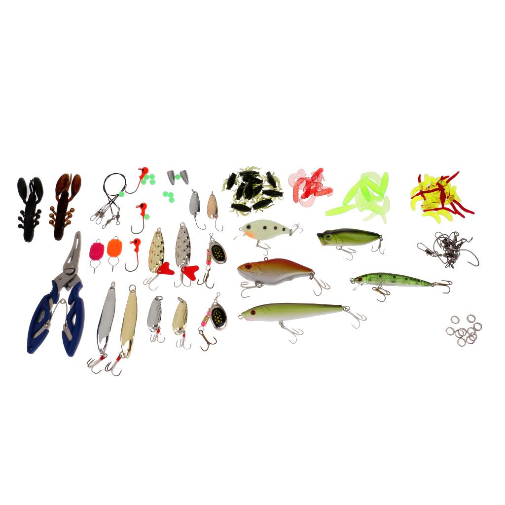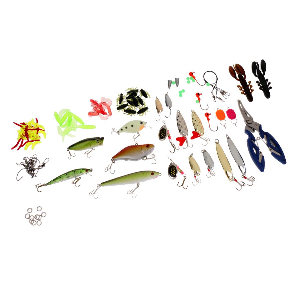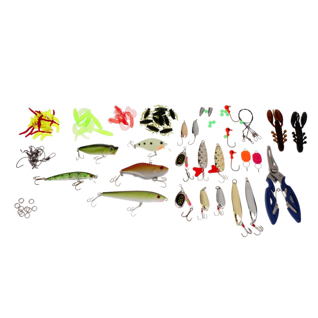 100 pieces fishing lures contain worm baits, bionic fish, sequins etc