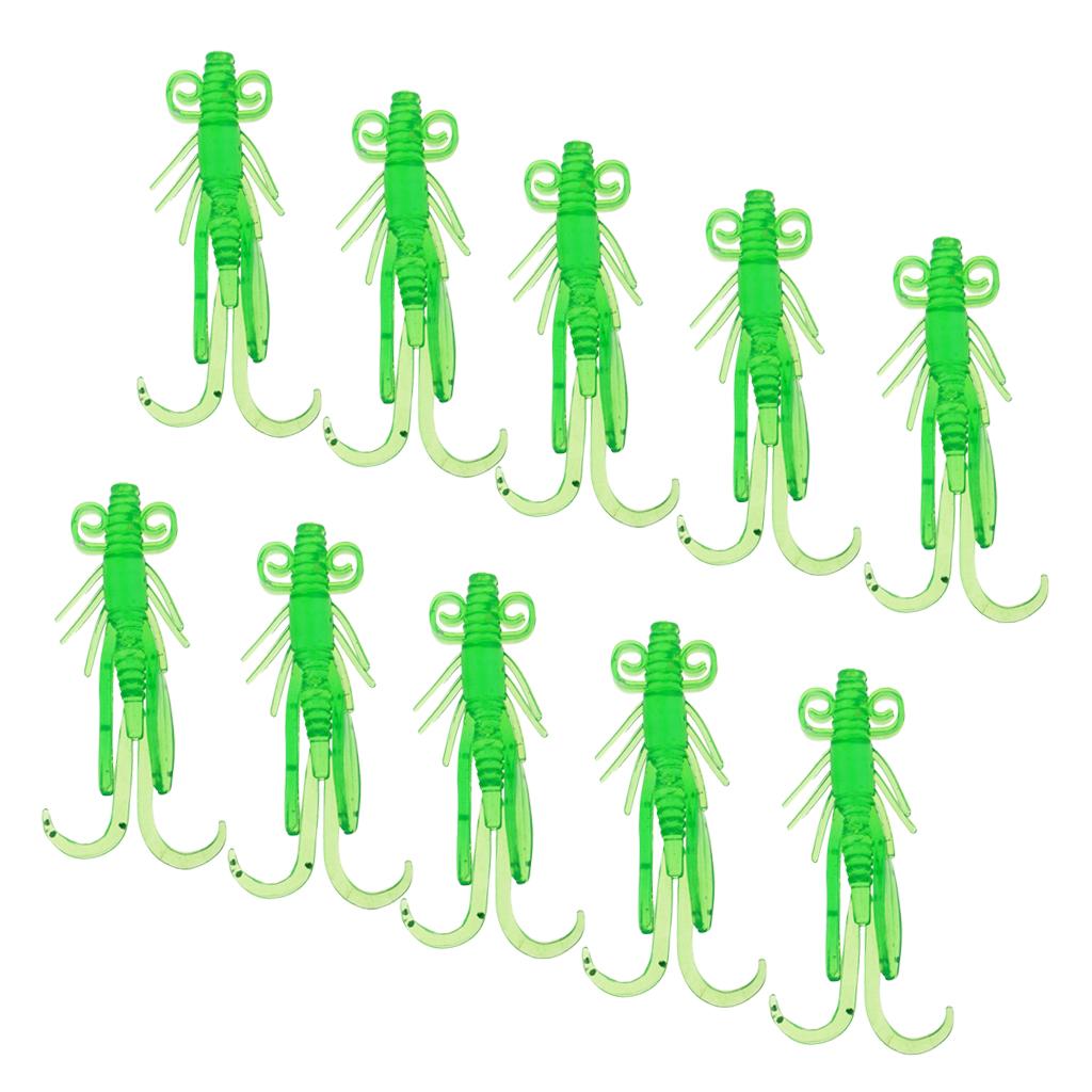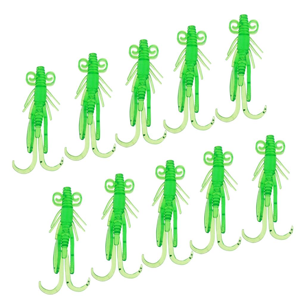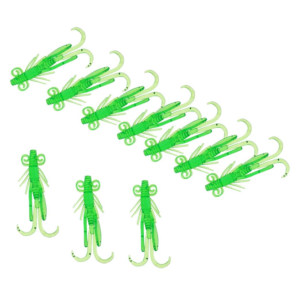 10Pcs Soft Fishing Lures Silicone Simulation Shrimp Lobster Baits Green