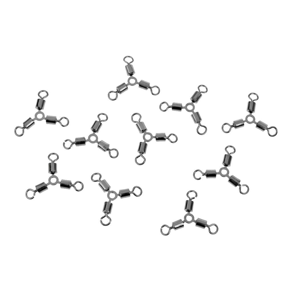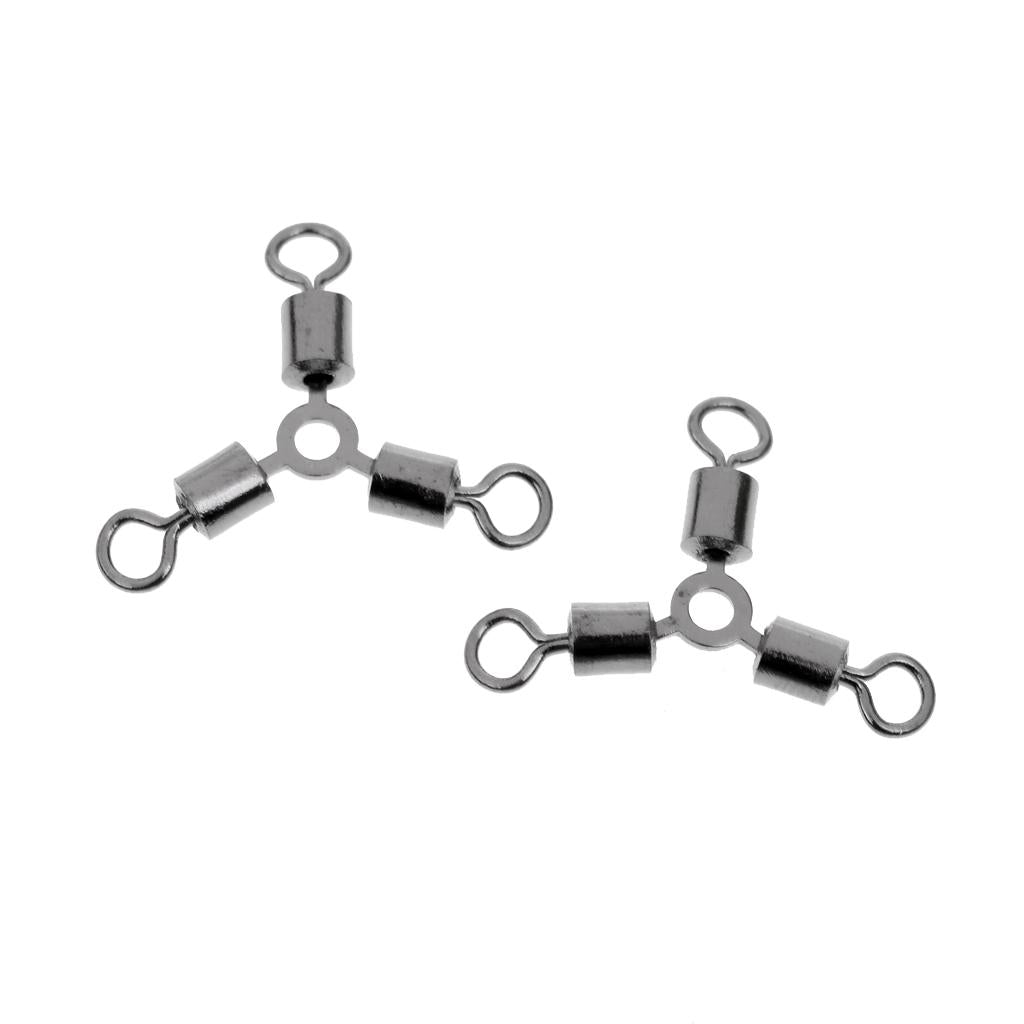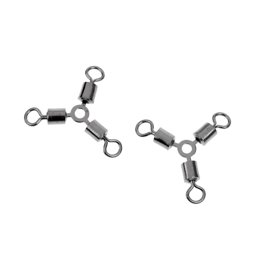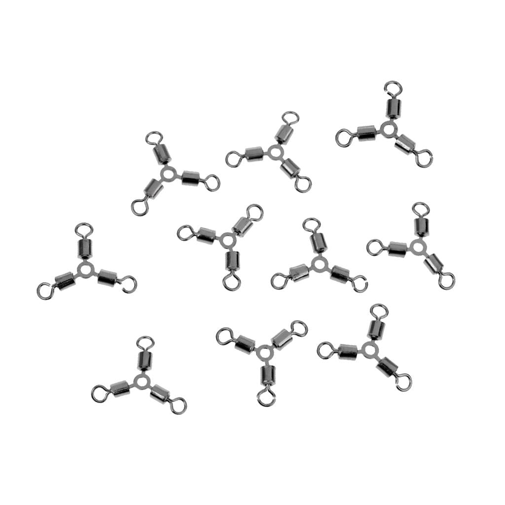 10pcs Steel 3 Way Fishing Barrel Rolling Swivel Solid Rig Rings Connector 2#