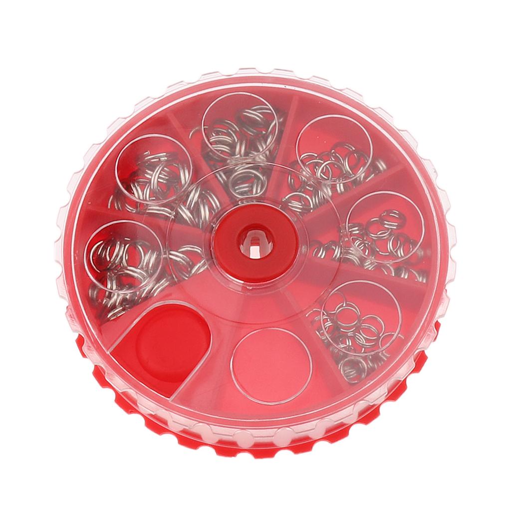 Multi-size double split rings mixed packed in a round wheel