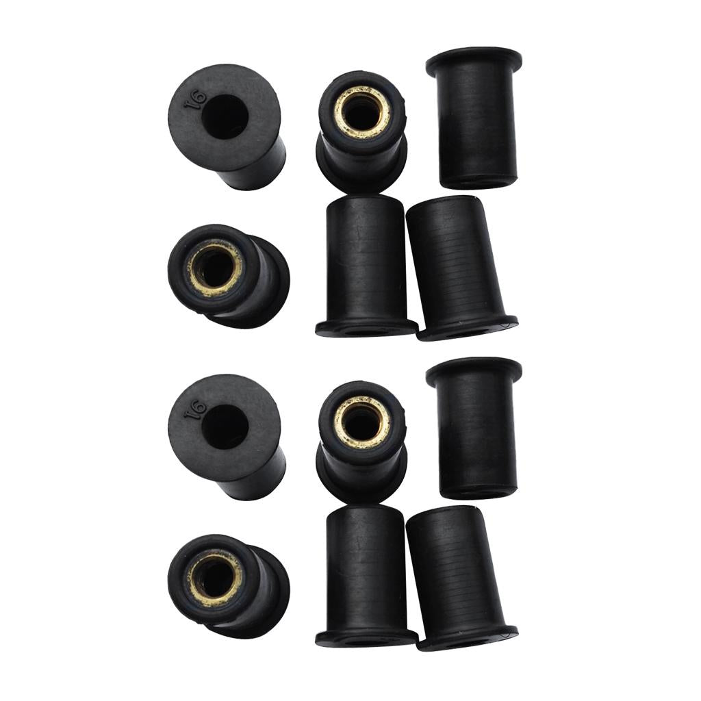Rubber nuts consist of a flanged neoprene rubber sleeve with a captive brass nut