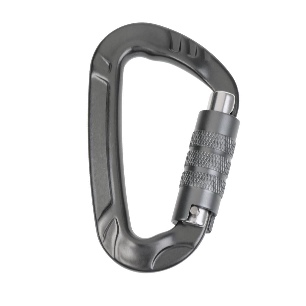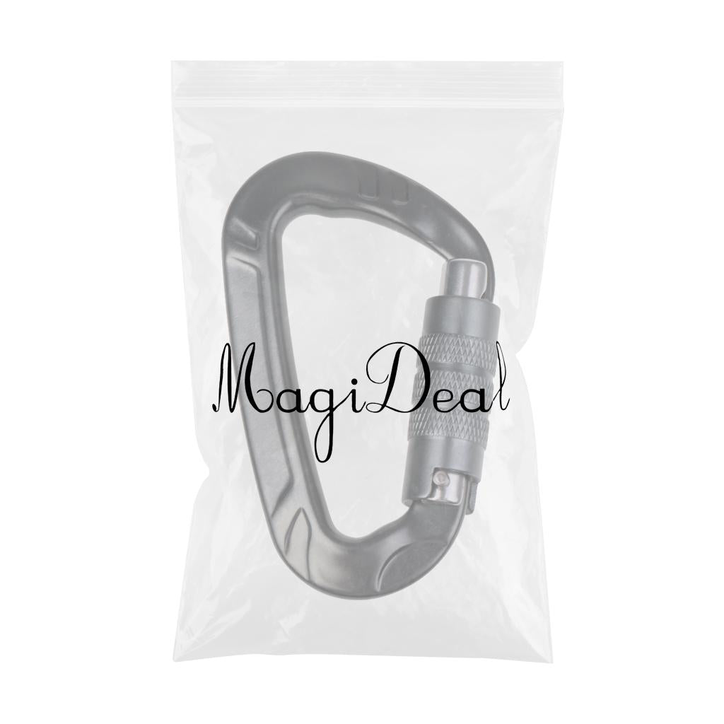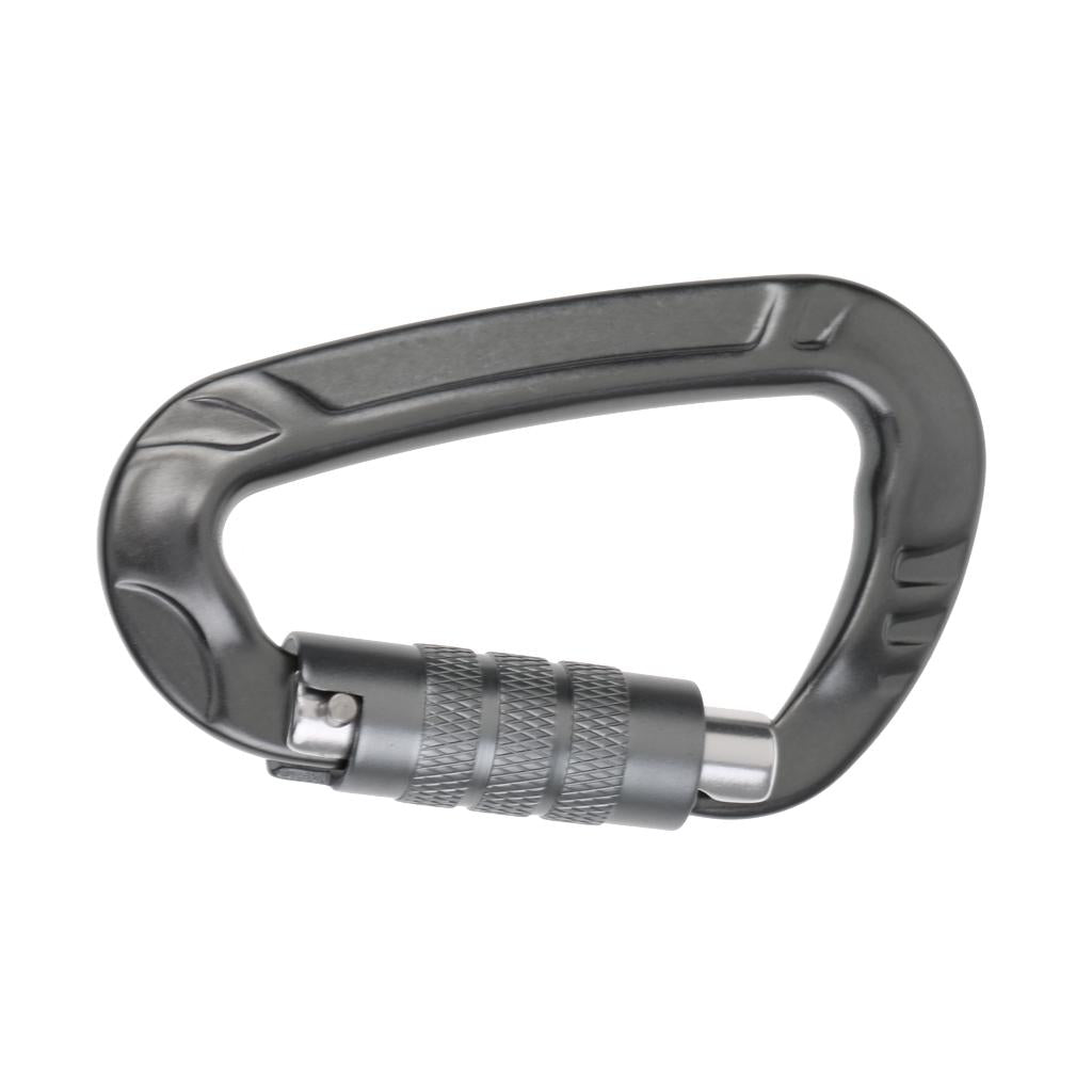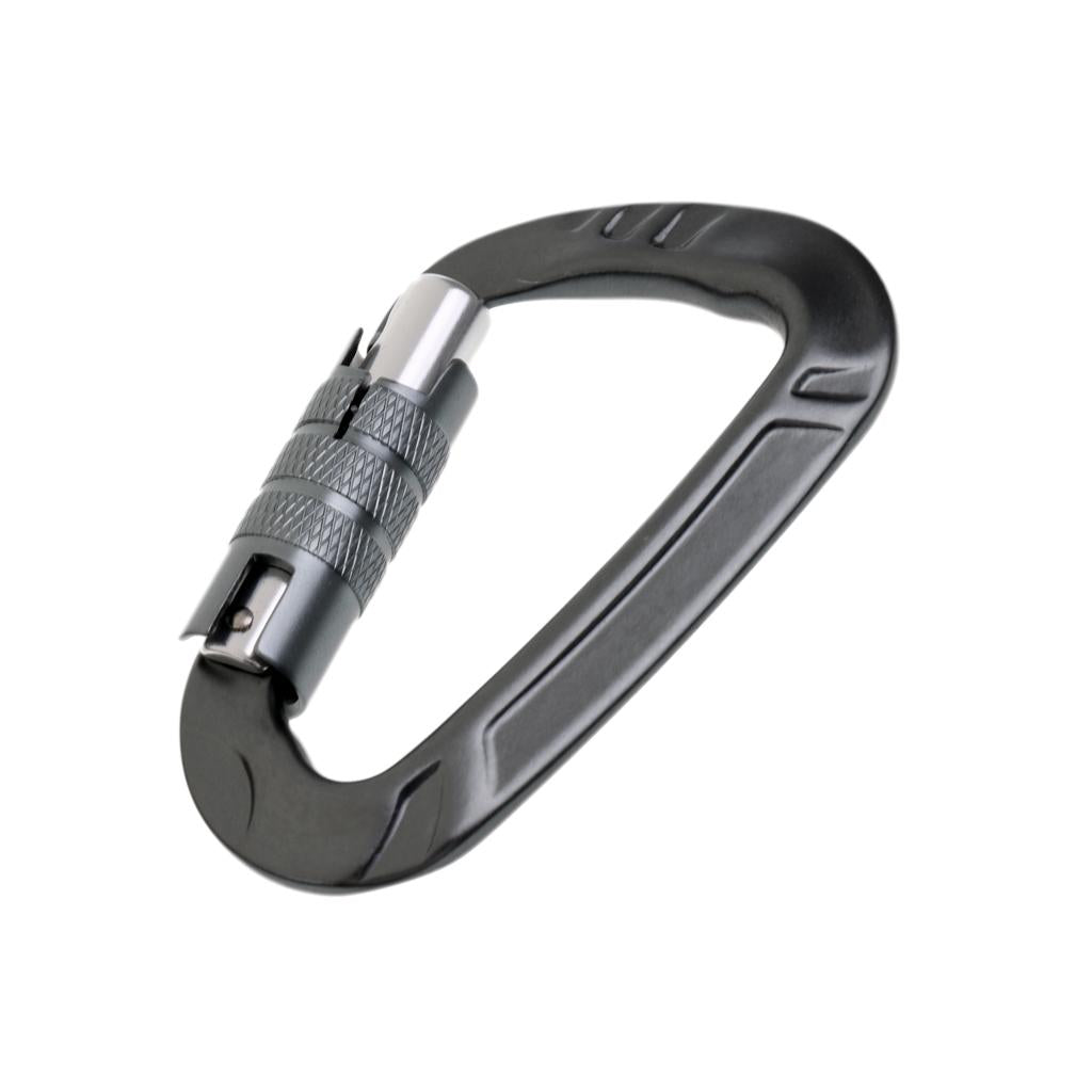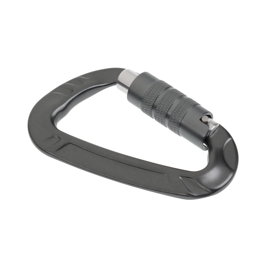 12KN D Shape Carabiner Screw Locking Clip Hook Keychain Camping Gray