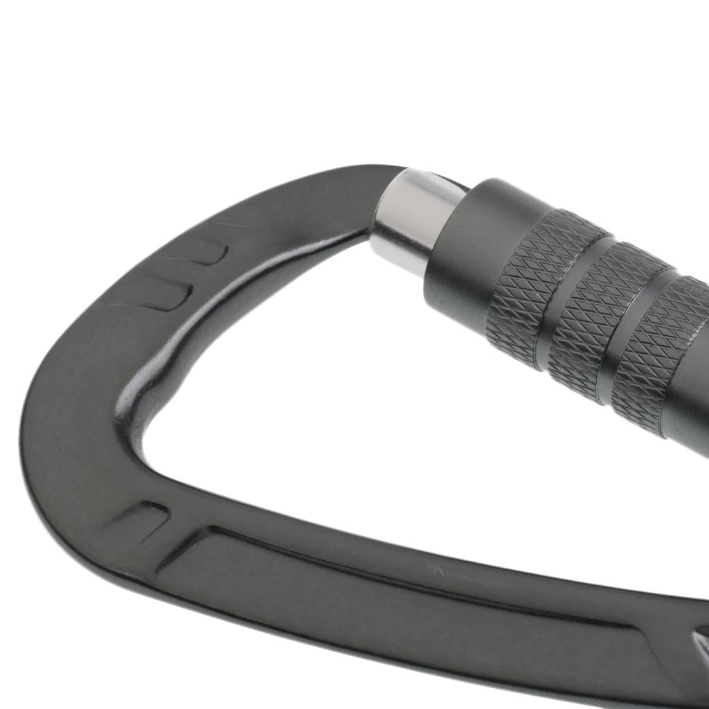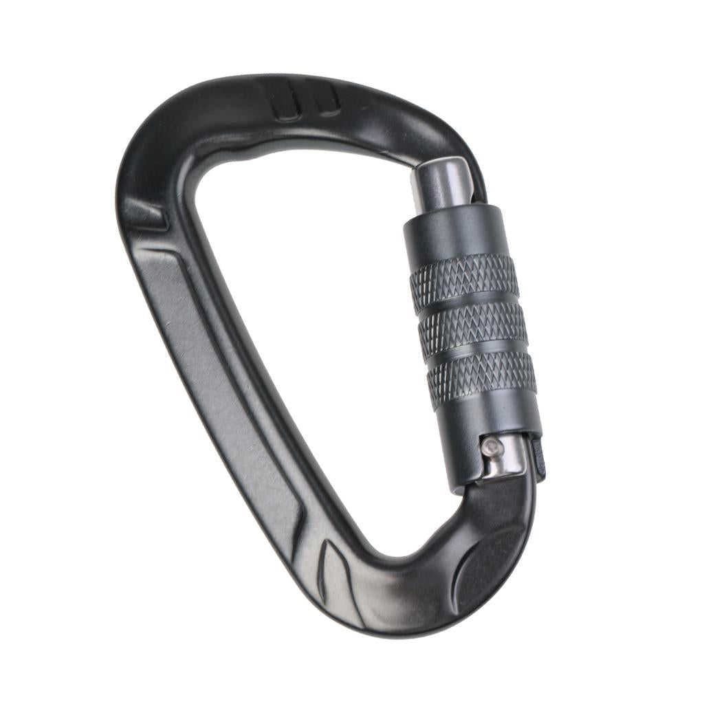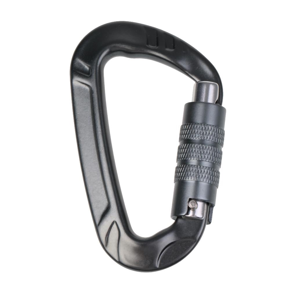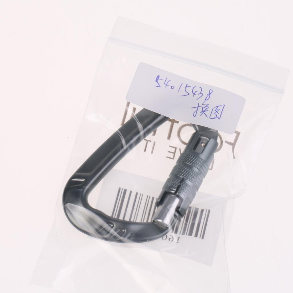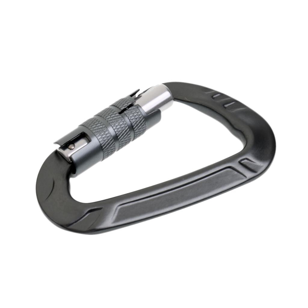12KN D Shape Carabiner Screw Locking Clip Hook Keychain Camping Gray