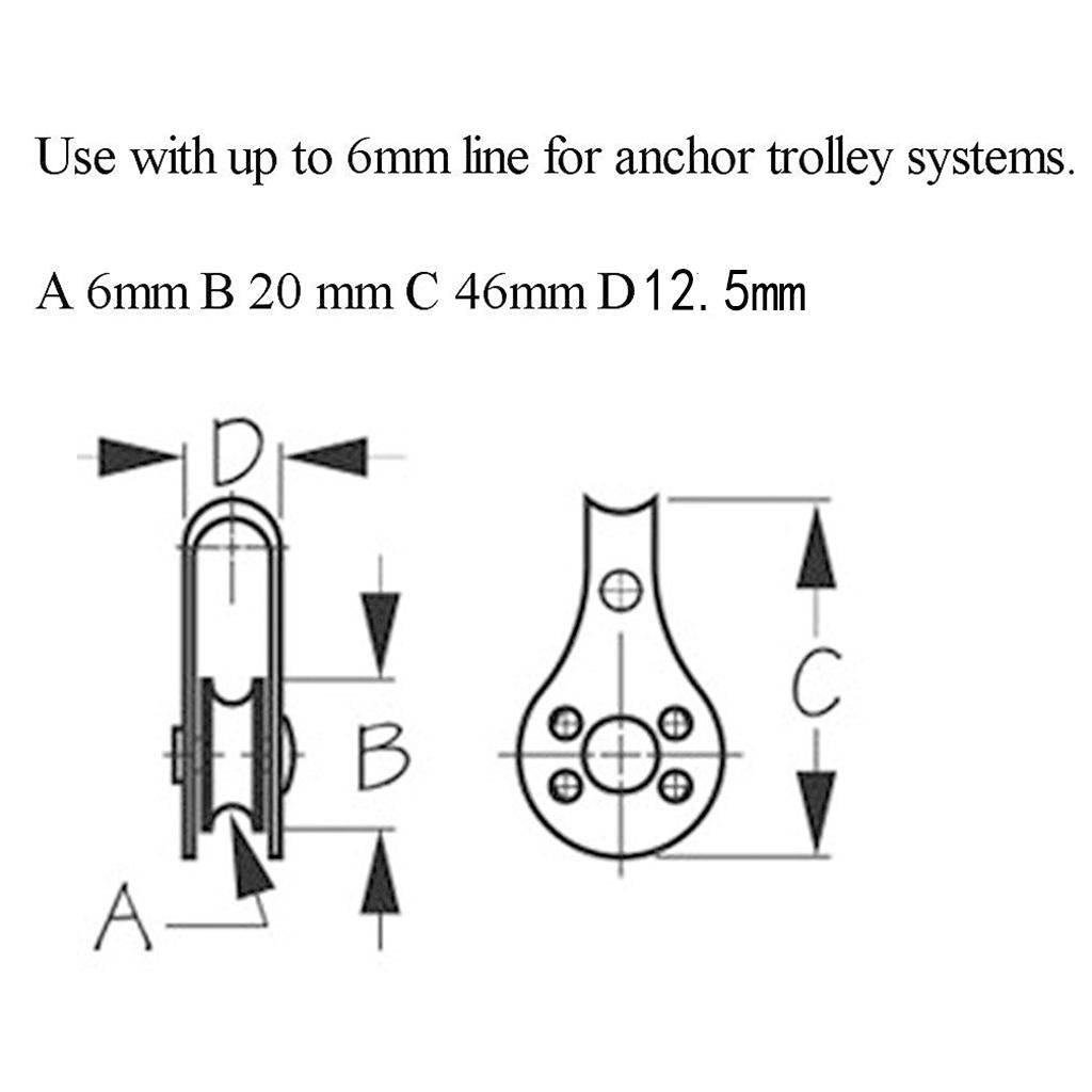 The 12.5mm pulley can use with up to 6mm line for anchor trolley systems