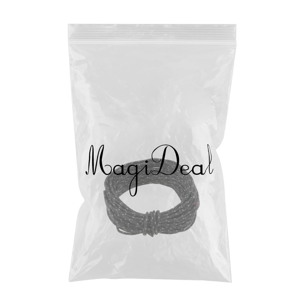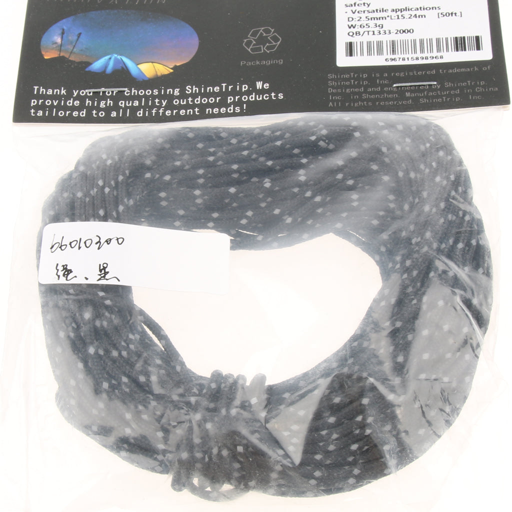 Can be used as tent / canopy /awning guy line, camping cord, rain tarp paracord, sun shelter rope, clothesline, parachute cord, outdoor strapping, guide post, package line, etc. for camping, hiking, picnic, BBQ, garden, backyard, fishing, and other outdoor activities