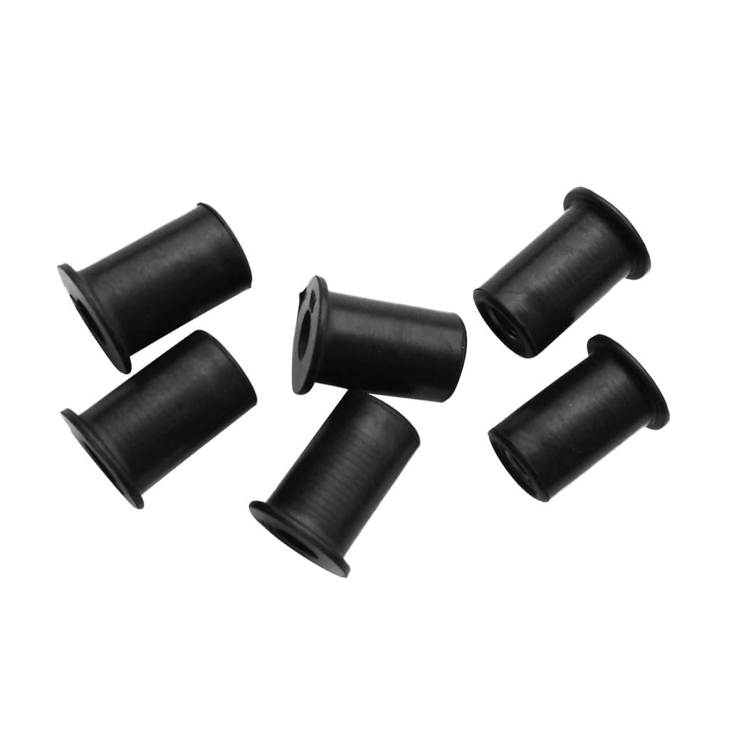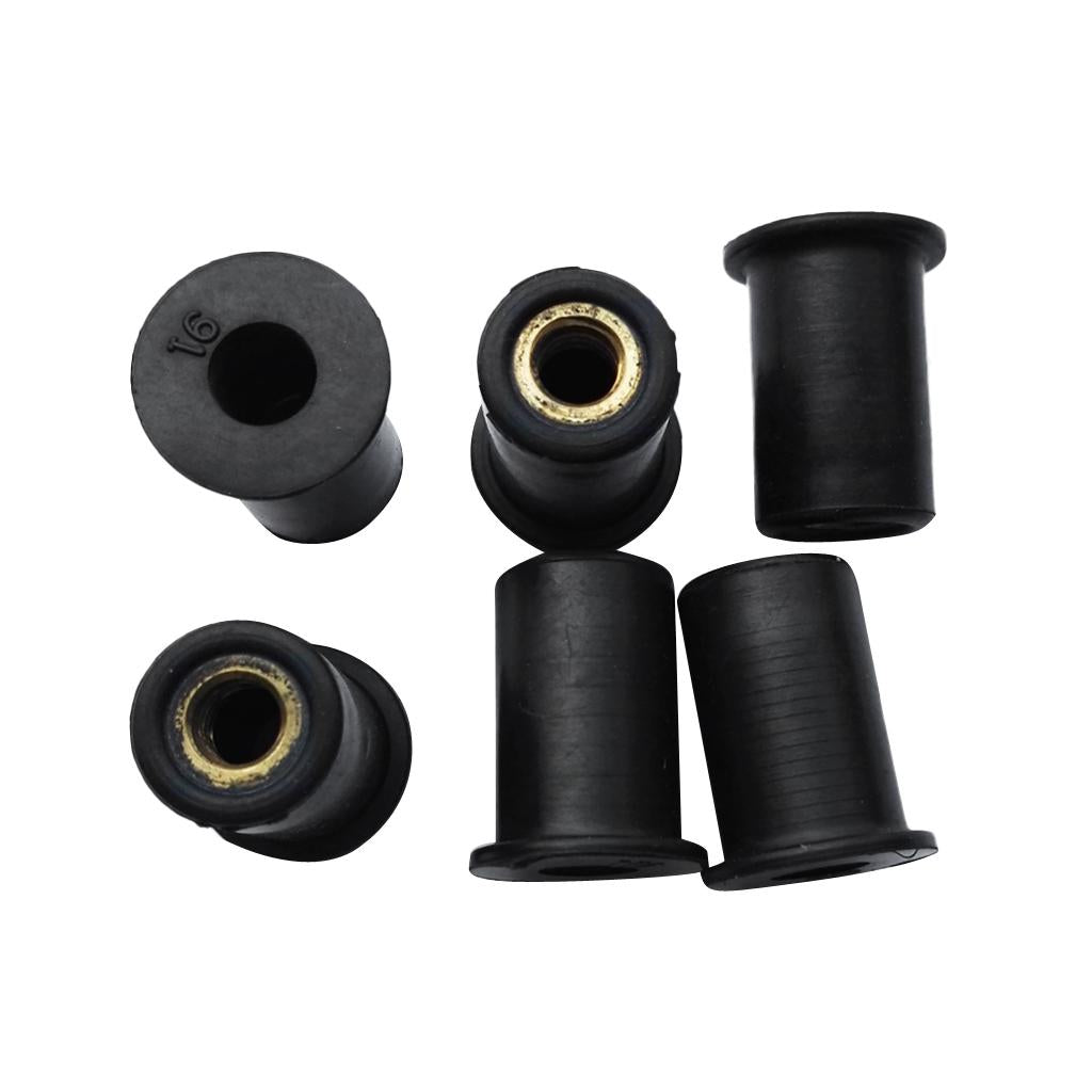 Rubber nuts consist of a flanged neoprene rubber sleeve with a captive brass nut, can be used in blind holes and tubes, fits all M6 metric machine screws