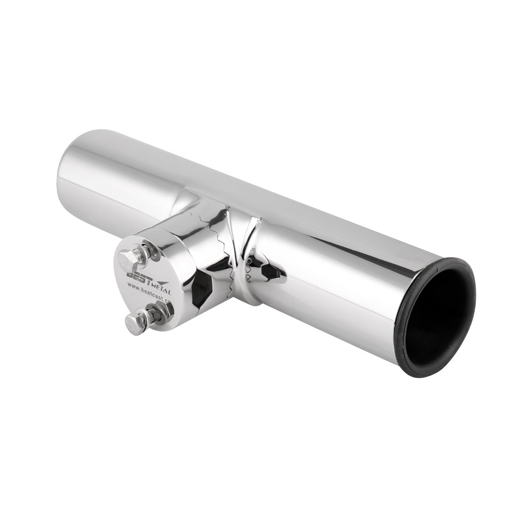 The rod holder mounts on vertical or horizontal rails from 3/4" to 1" in diameter