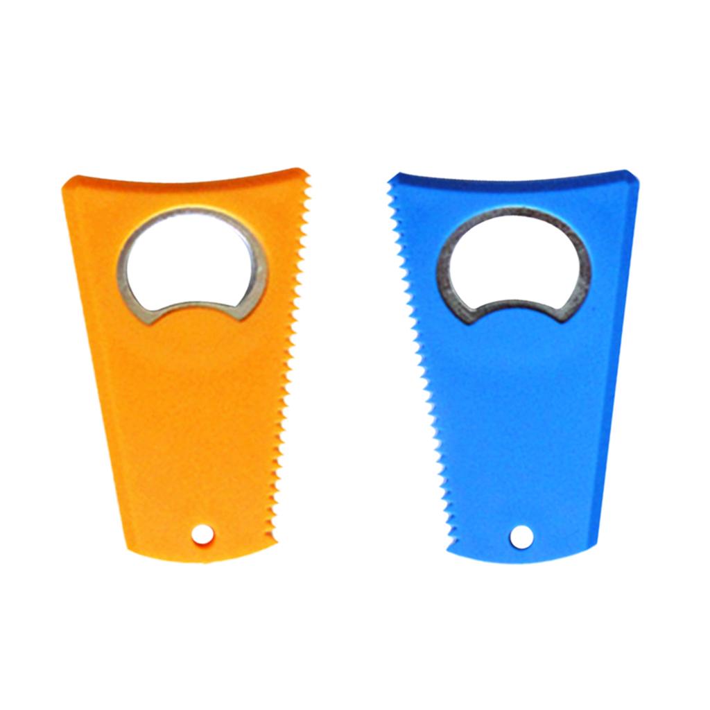 The jagged edge is used to create textured grooves for improving the traction of the wax, and the straight edge is used for scraping off unwanted wax