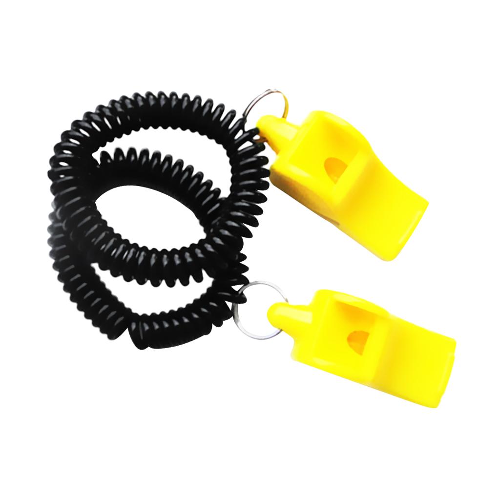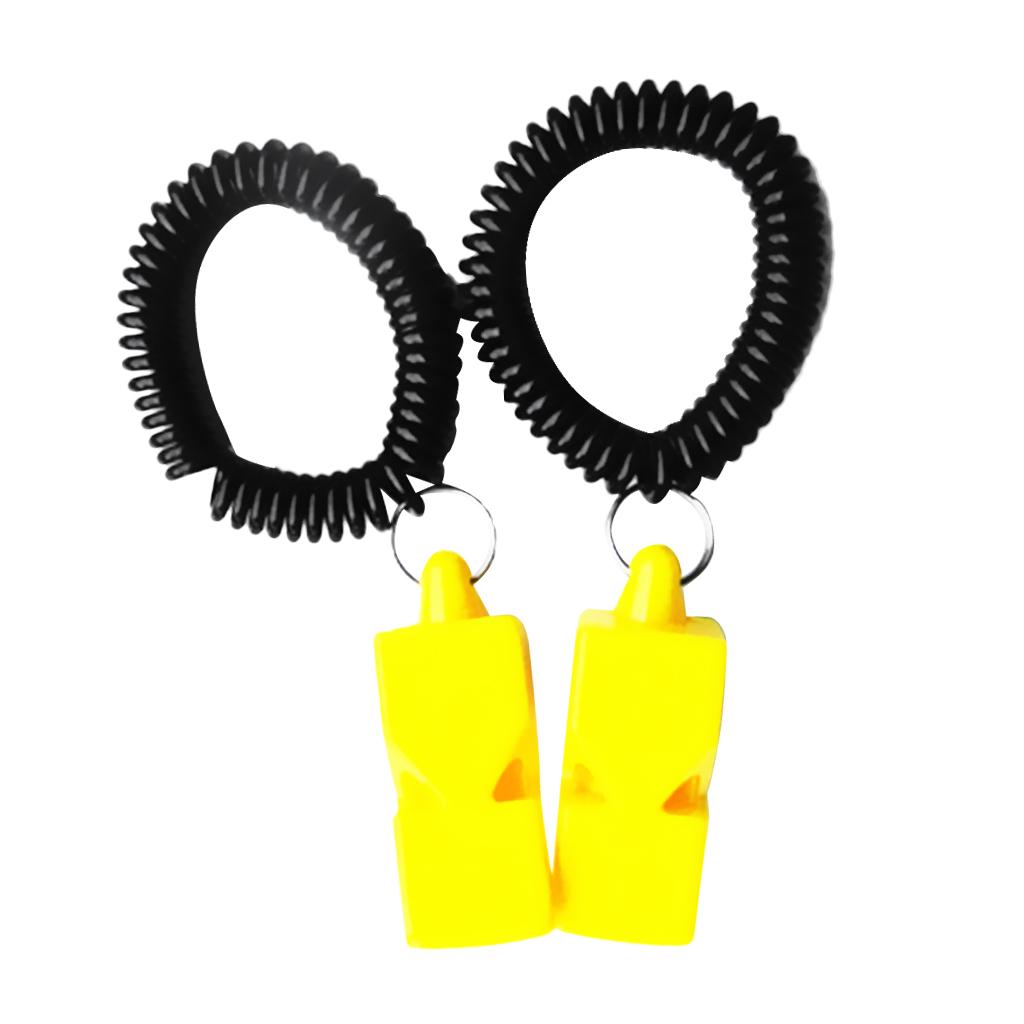 2 Pieces Survival Safety Whistle Wrist Coil Emergency Scuba Diving Yellow