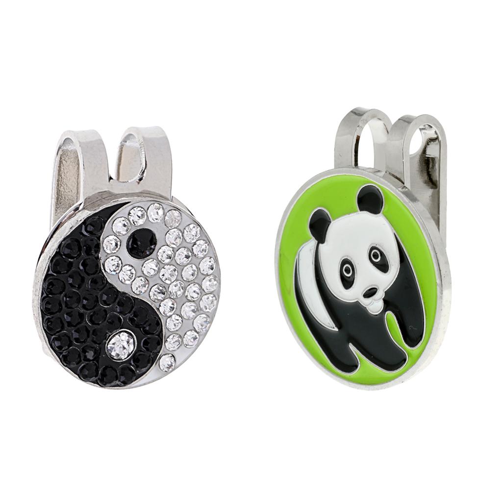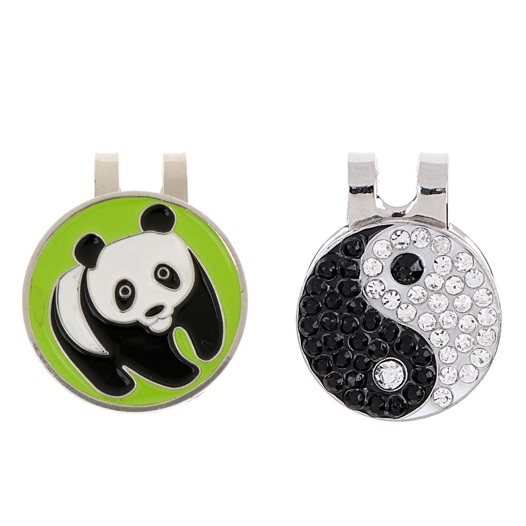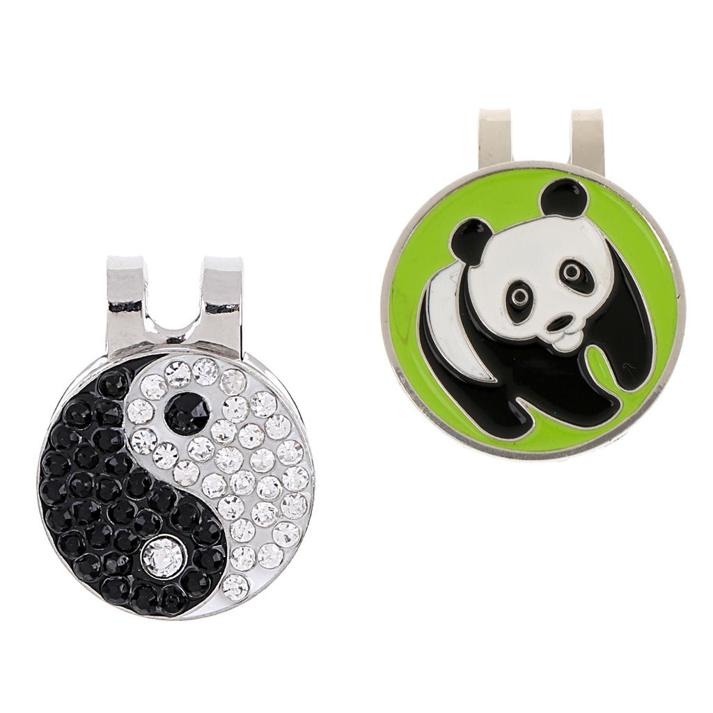 1 Piece panda pattern golf ball marker with 1 piece shiny Yin Yang ball marker
