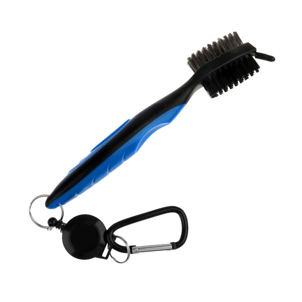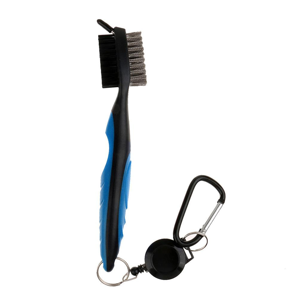 2 Sided Golf Club Brush Groove Ball Cleaning Snap Clip Blue