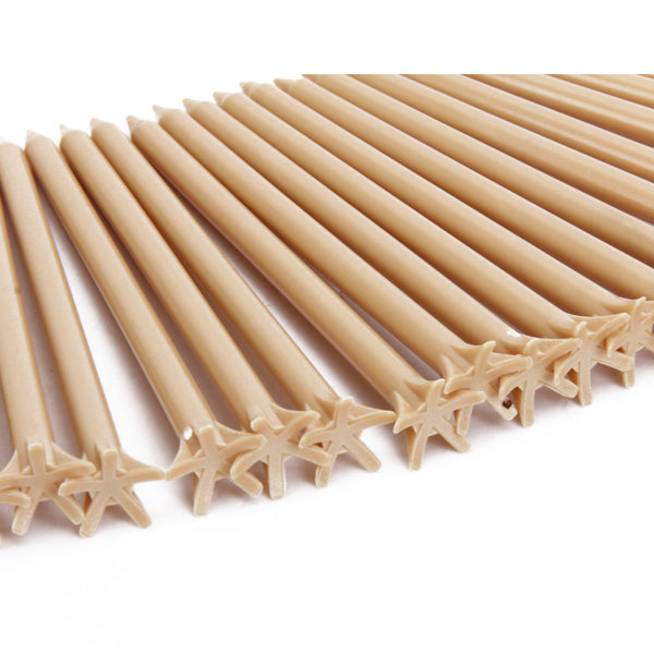 Five-prong top reduces the contact between the ball and tee while keeping the ball in place
