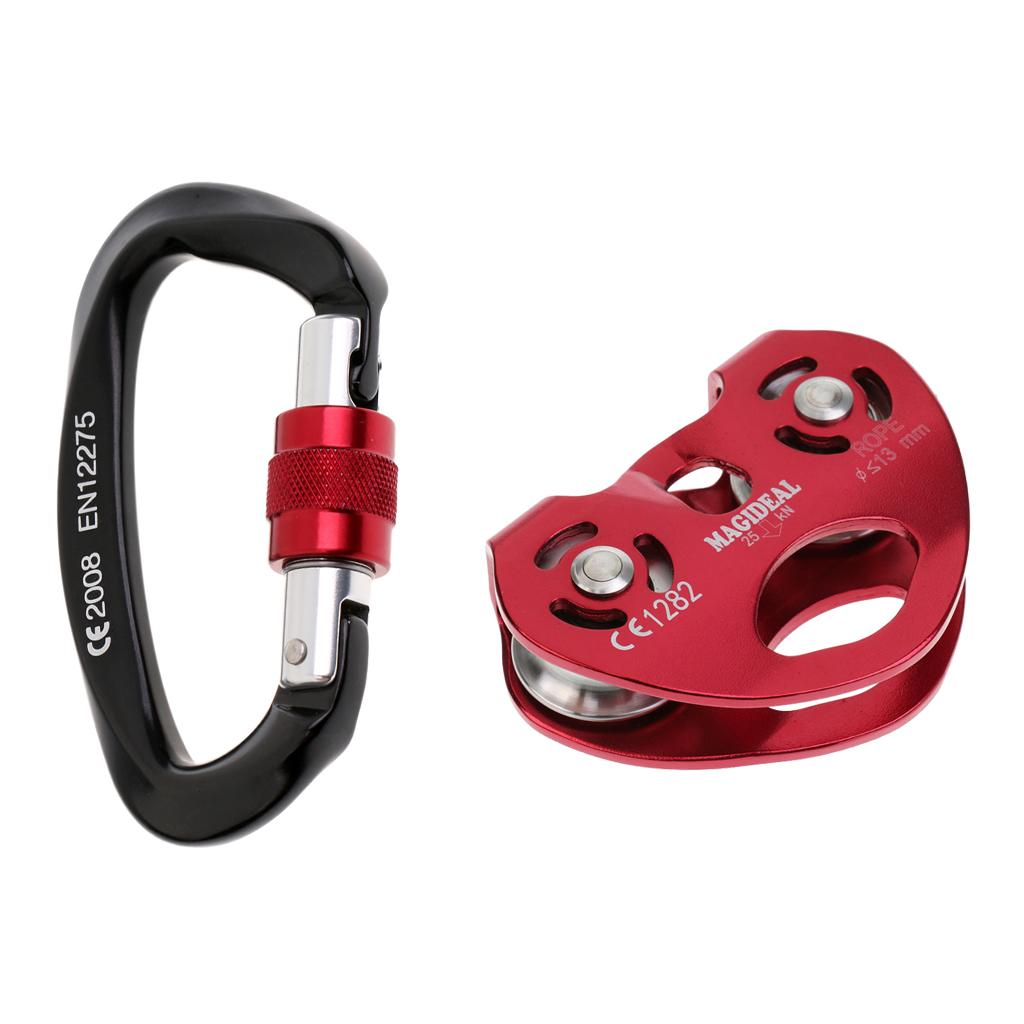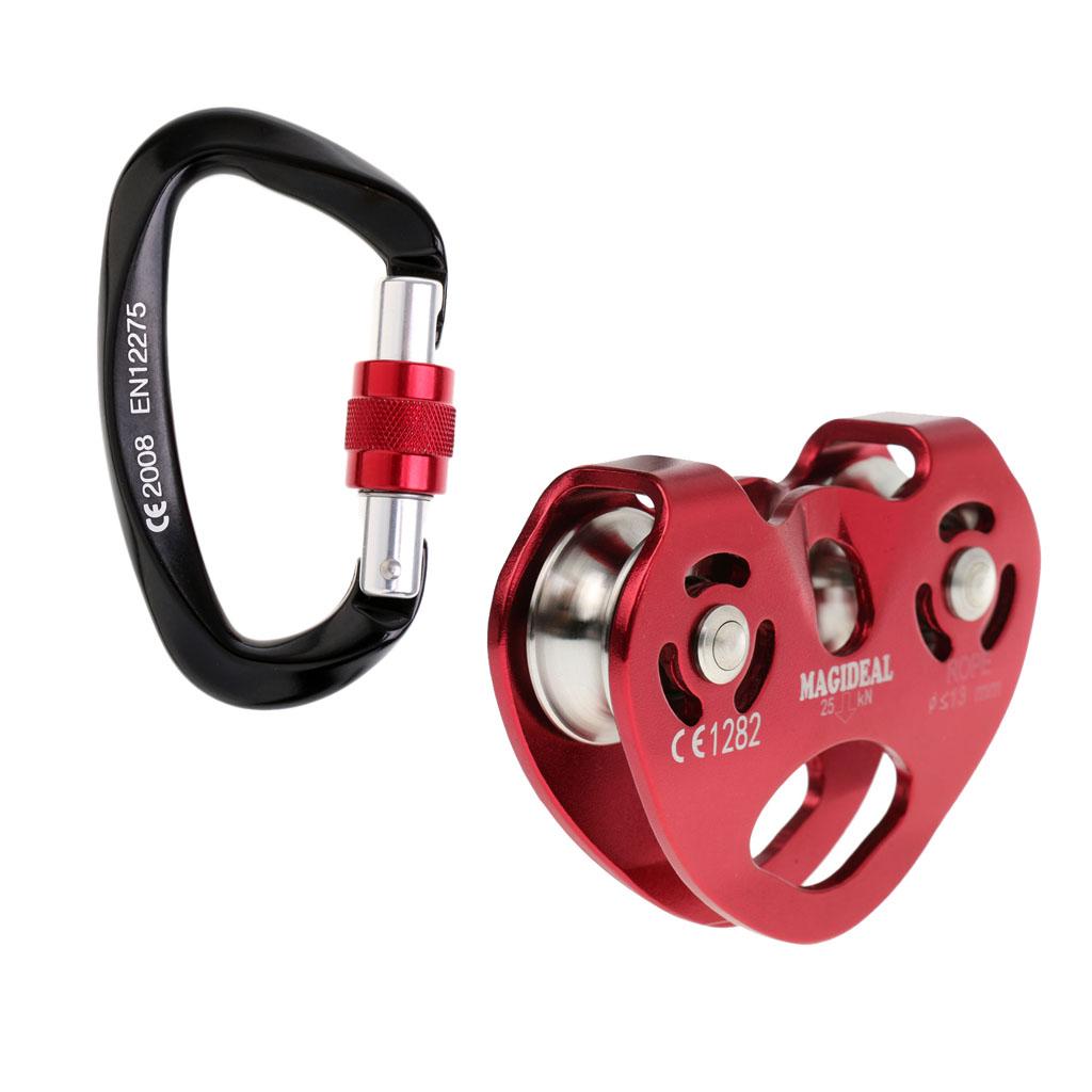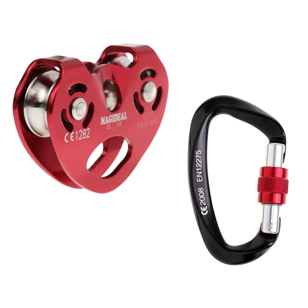25KN heart shape Climbing trolley pulley with 25KN D shape screw locking carabiner