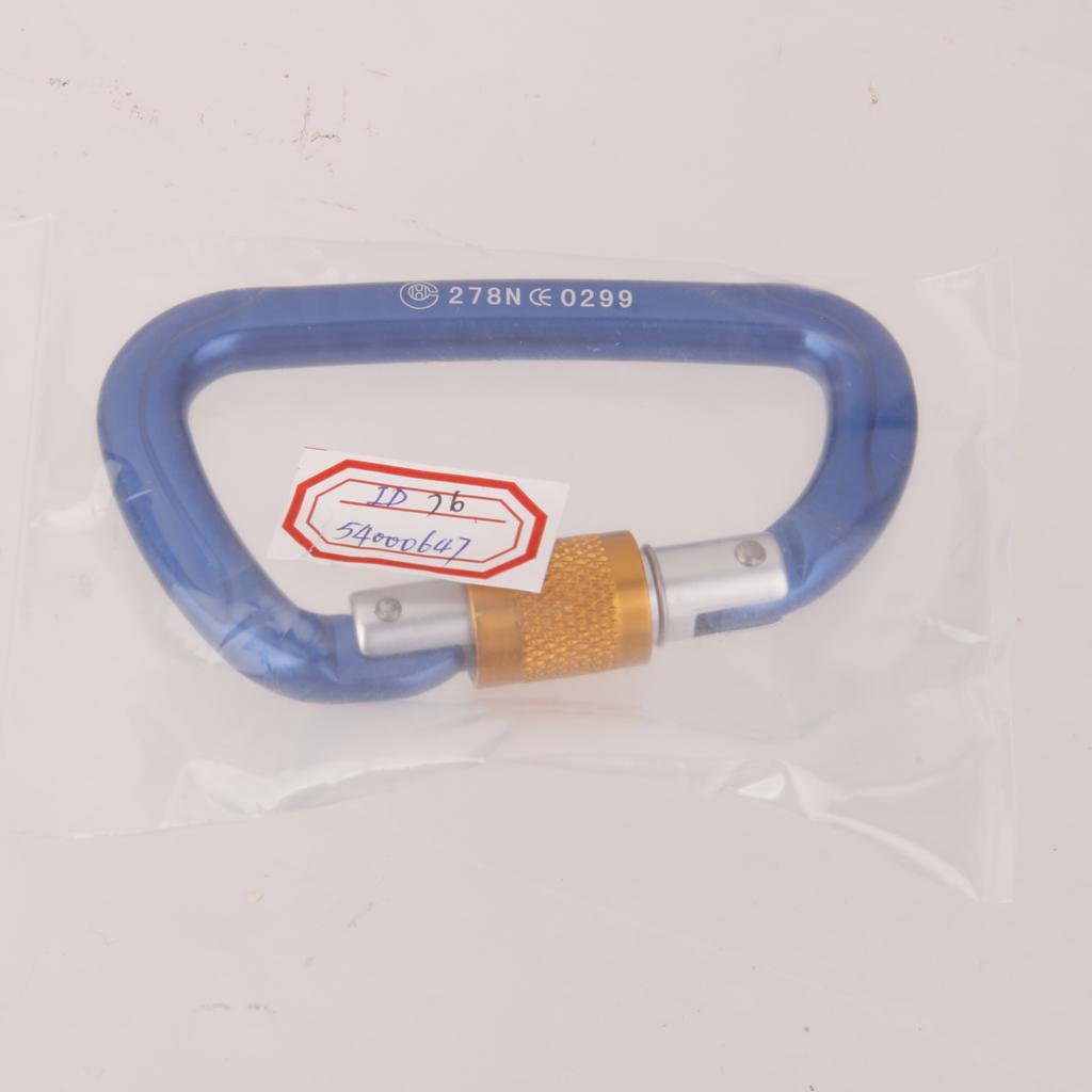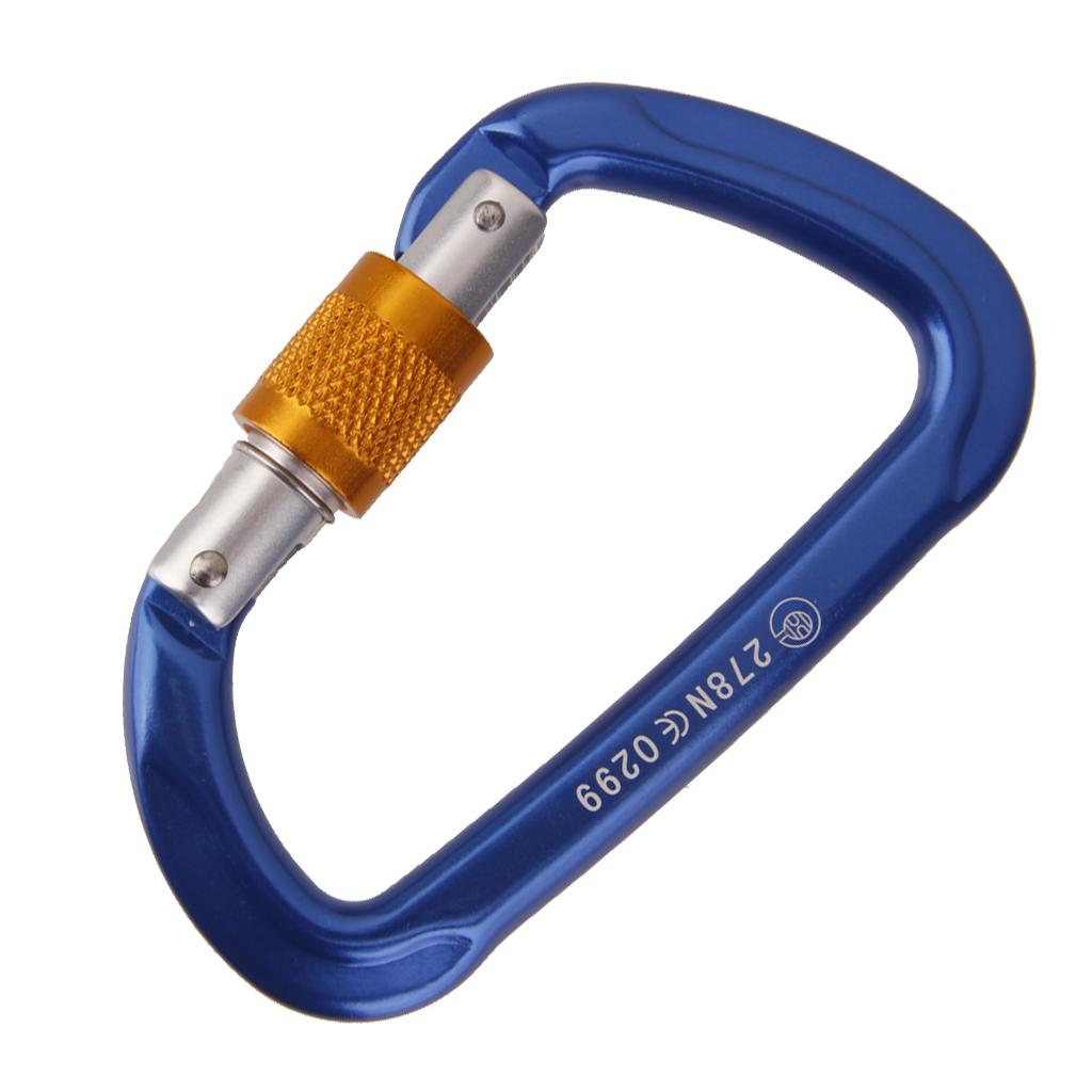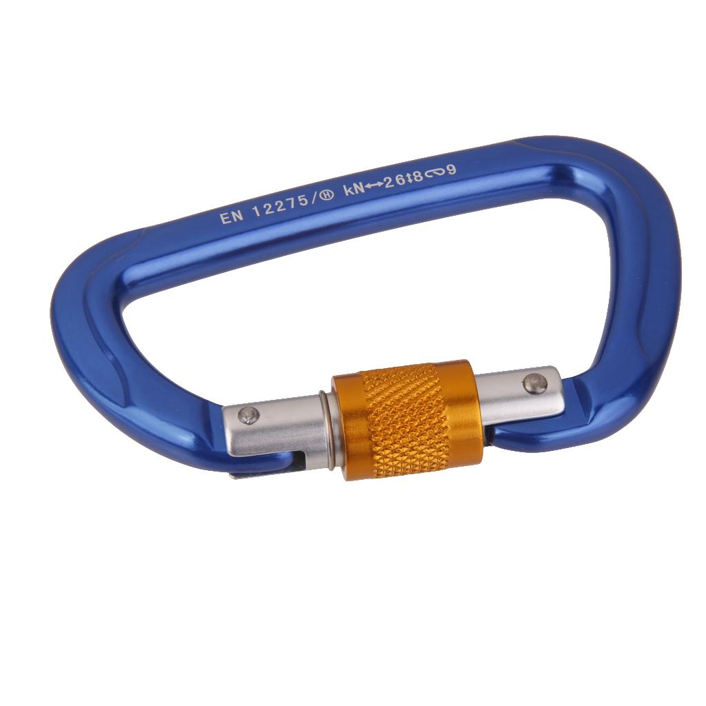26KN Screw Locking Mountaineering Climbing Aluminum D Shape Carabiner - Blue