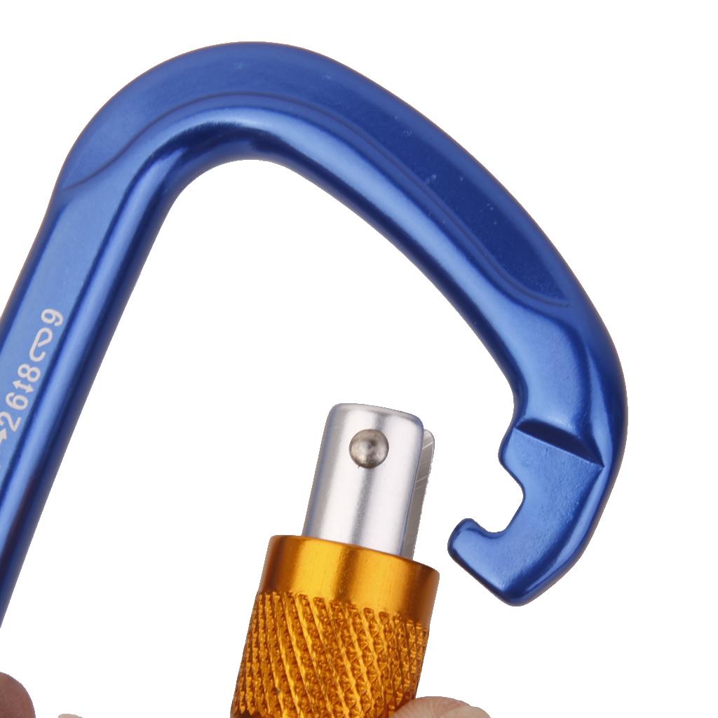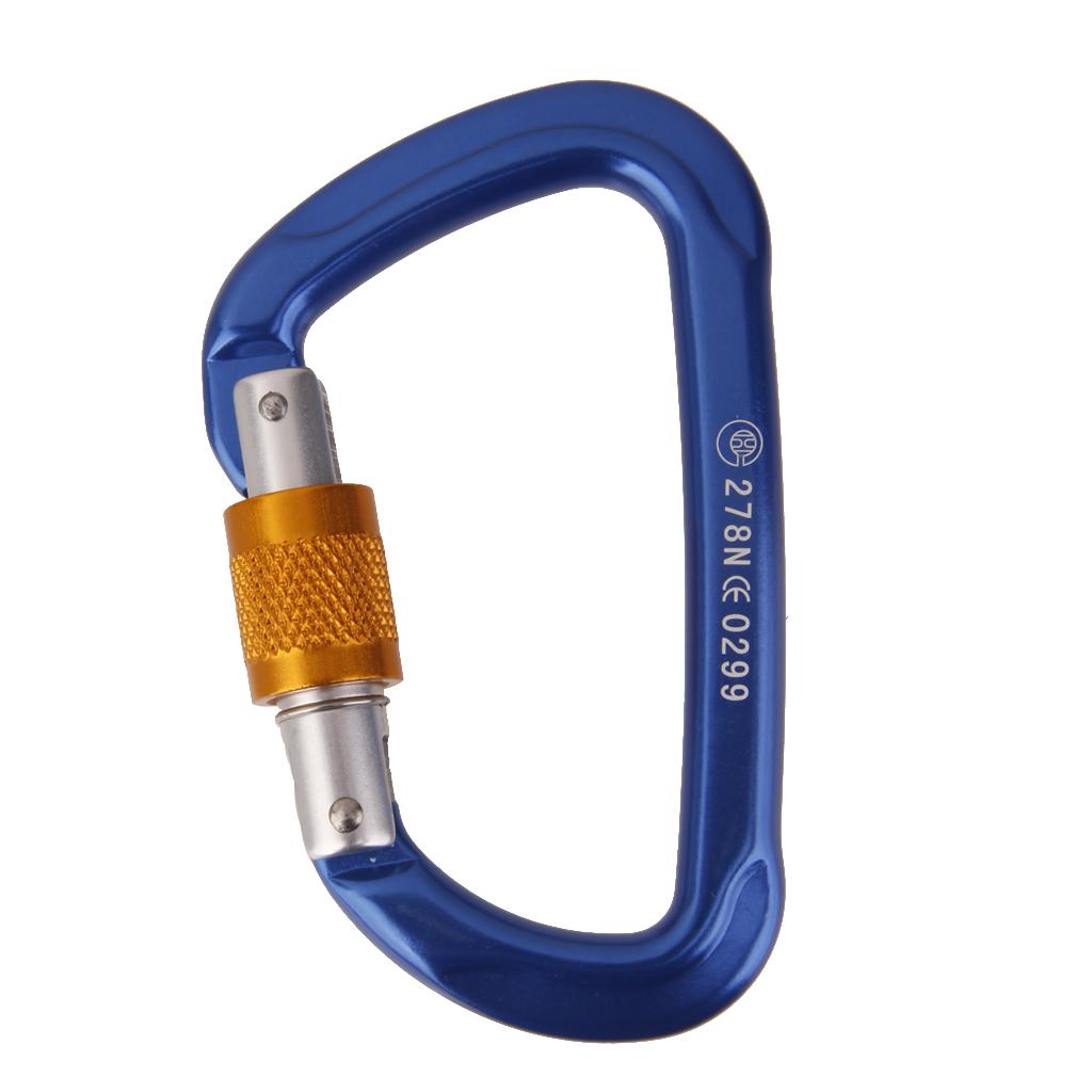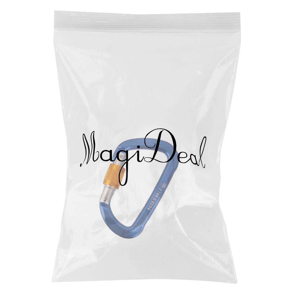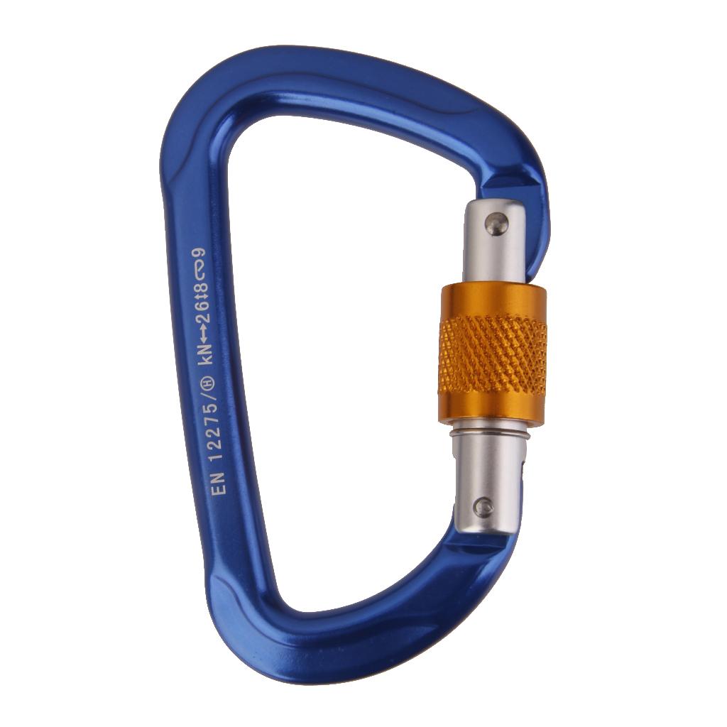 26KN Screw Locking Mountaineering Climbing Aluminum D Shape Carabiner - Blue