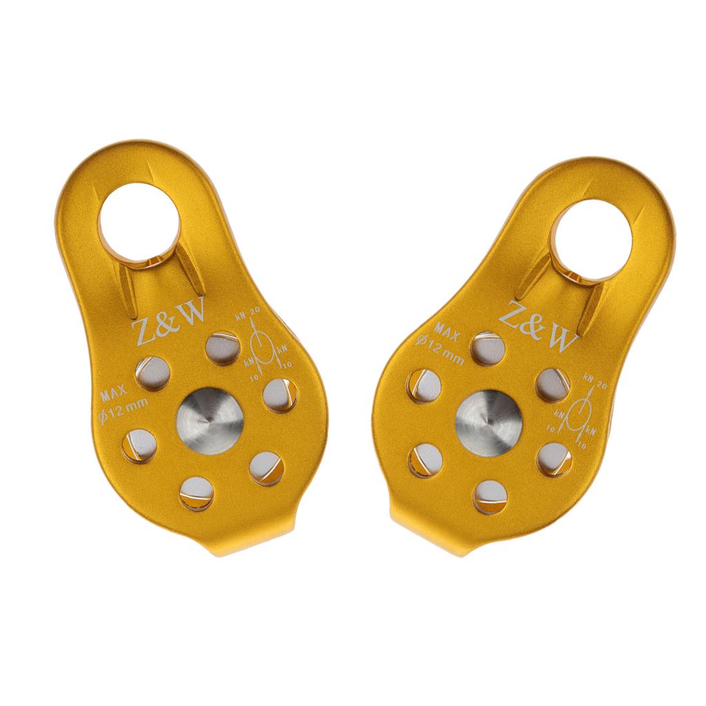 2pcs 20KN Rock Climbing Arborist Tree Climb Rope Fixed Pulley Gold Yellow