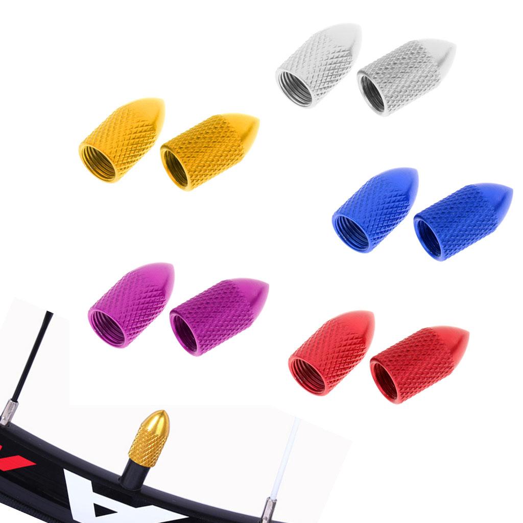 2Pcs Bike Aluminium Schrader Valve Cap Light Dust Cover Bicycle Fixie Purple