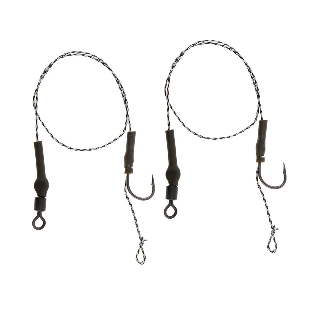 2pcs Carp Fishing Hair Rigs with Hand Tied Barbed Line Curved Shank Hooks 8