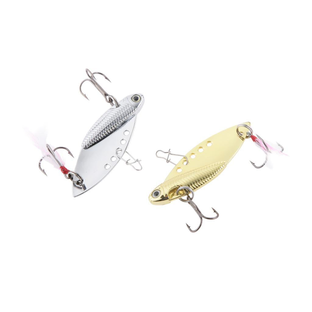 2Pcs Metal Fishing Lure Crankbaits Minnow Baits with Treble Hooks 14g