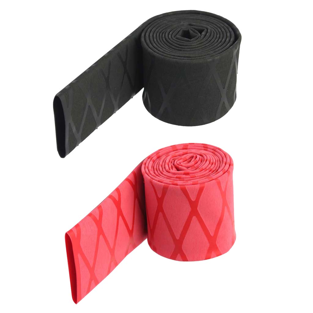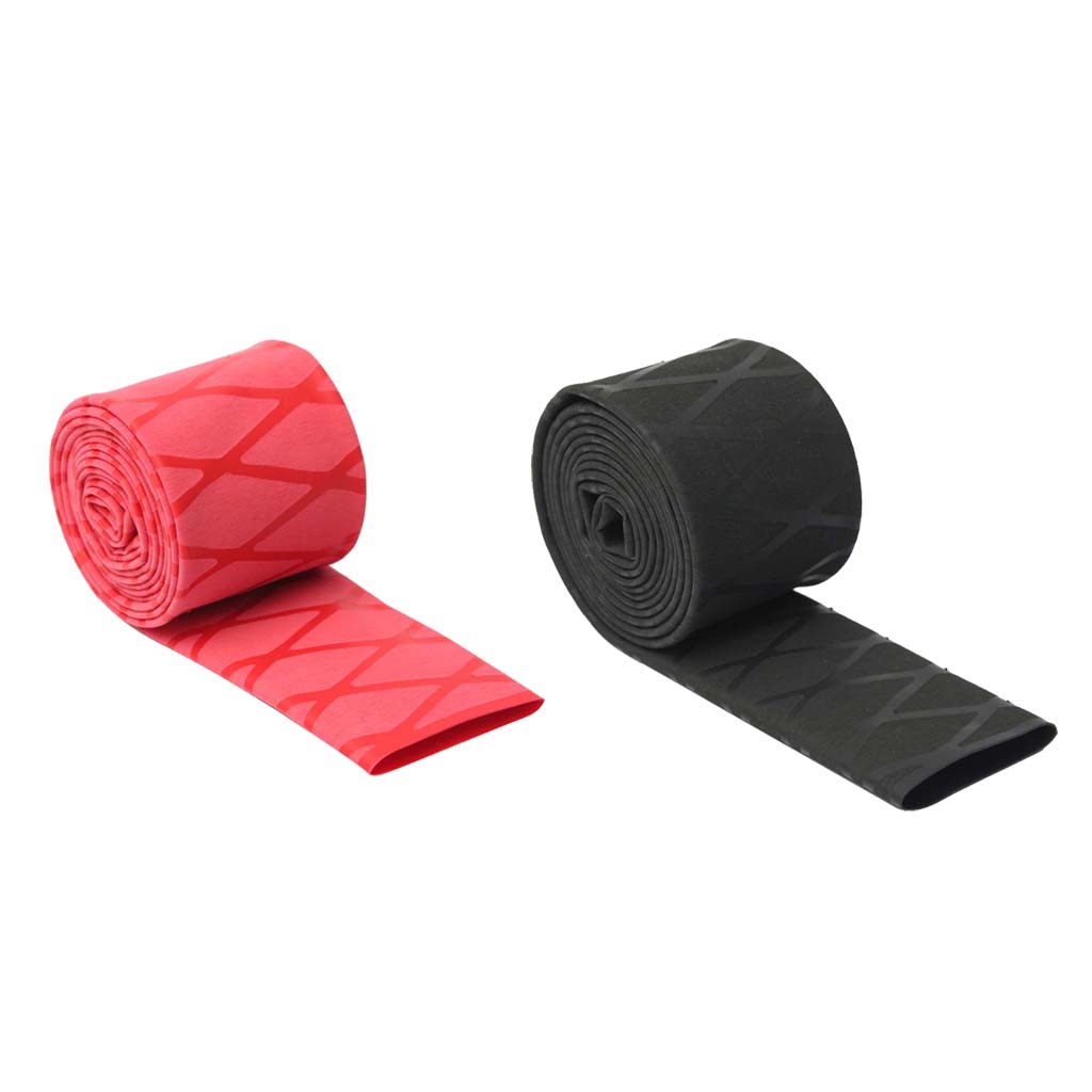 2X NonSlip Heat Shrink Tubing Textured Grip Fish Rod Racket Handle Black Red