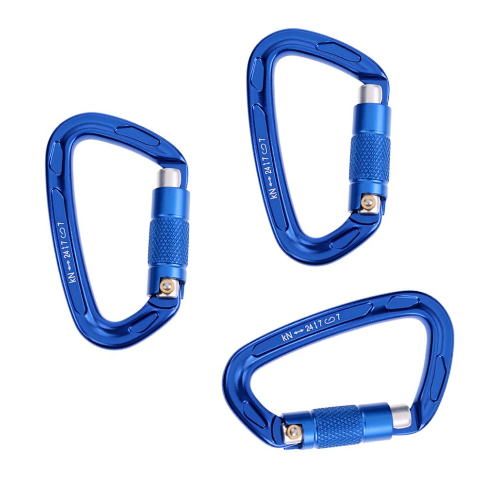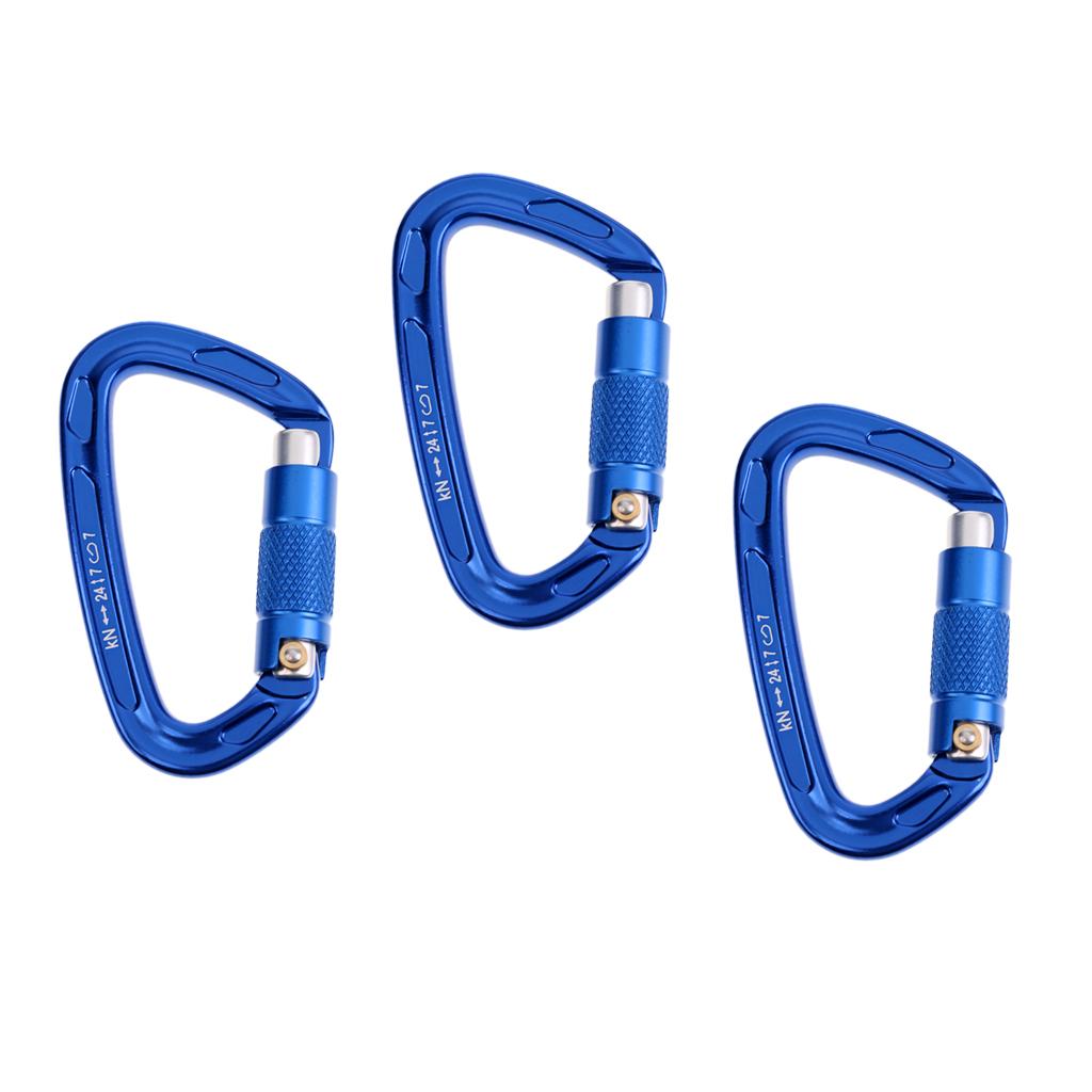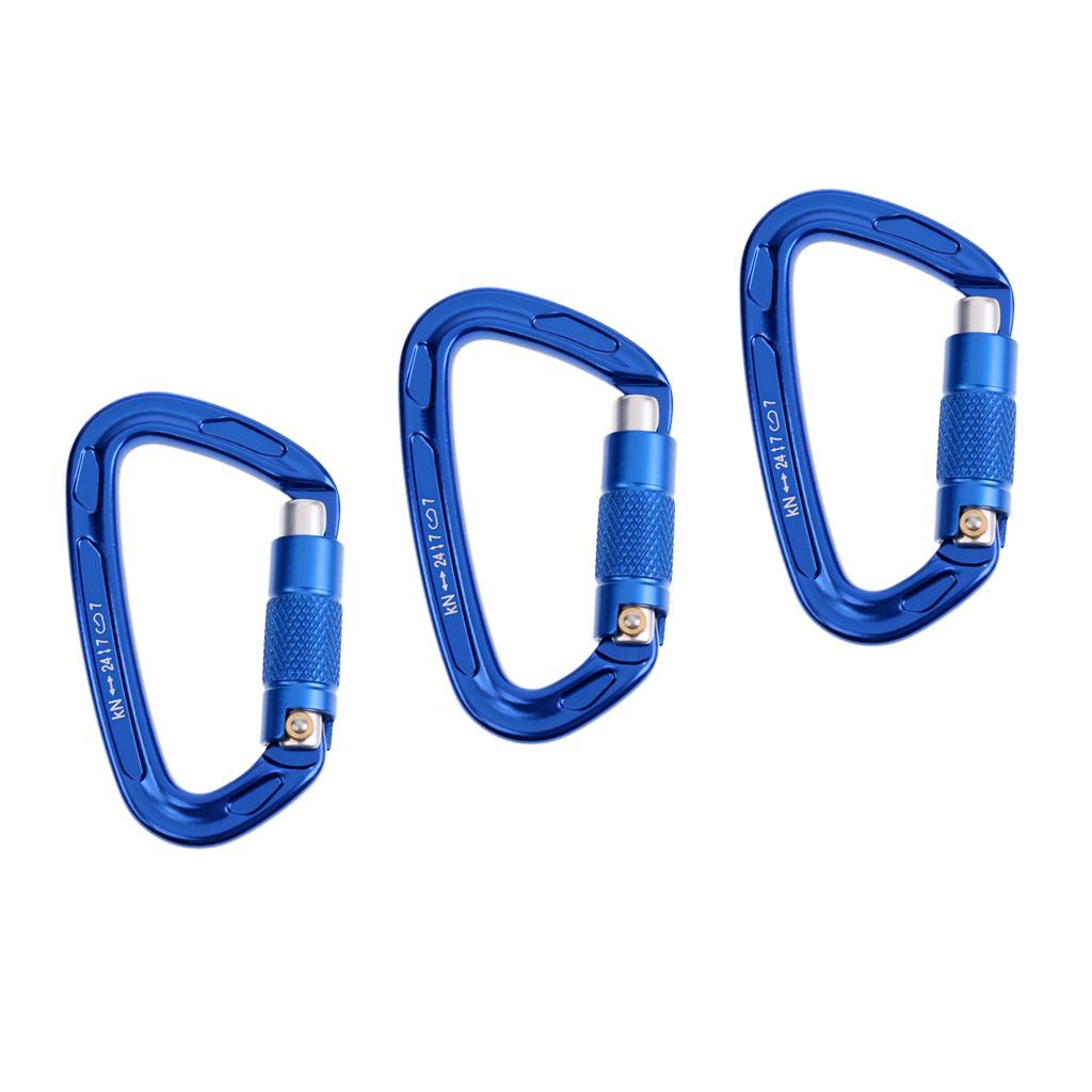 3 Pieces 24KN Aluminum Rock Climbing Auto Self Locking Carabiner blue