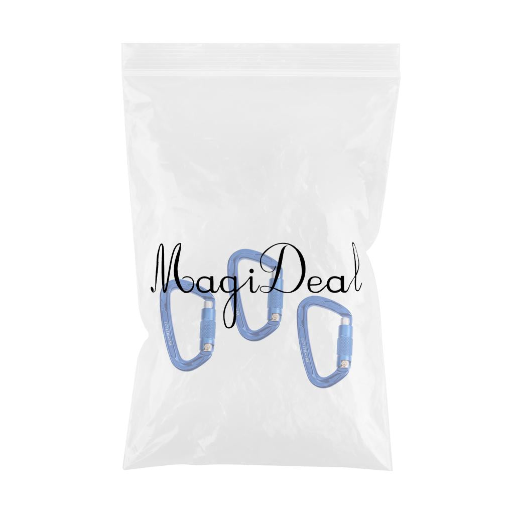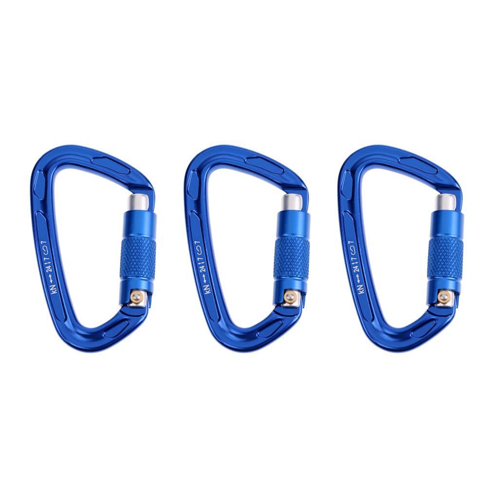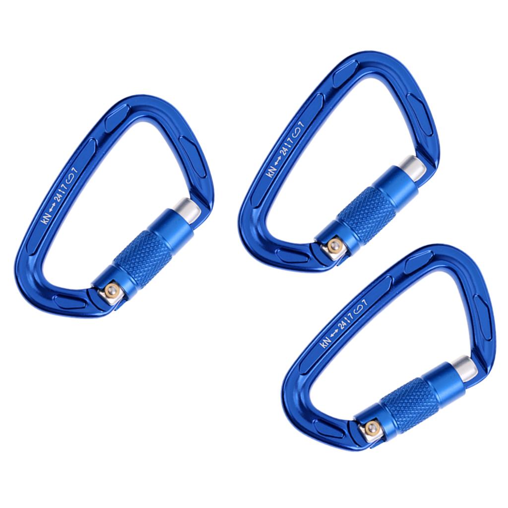 3 Pieces 24KN Aluminum Rock Climbing Auto Self Locking Carabiner blue