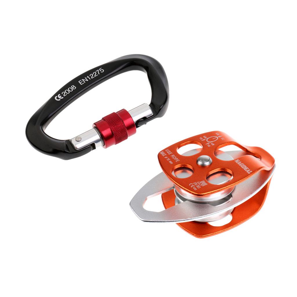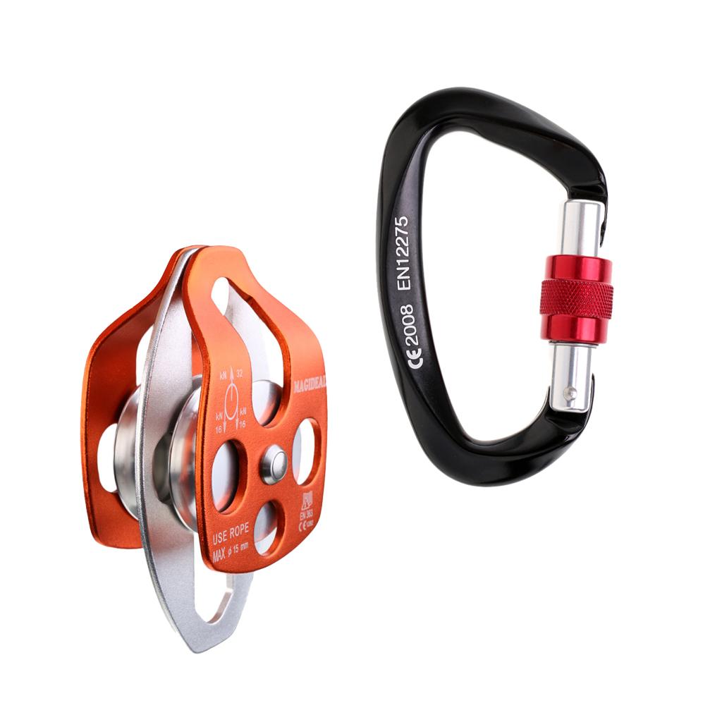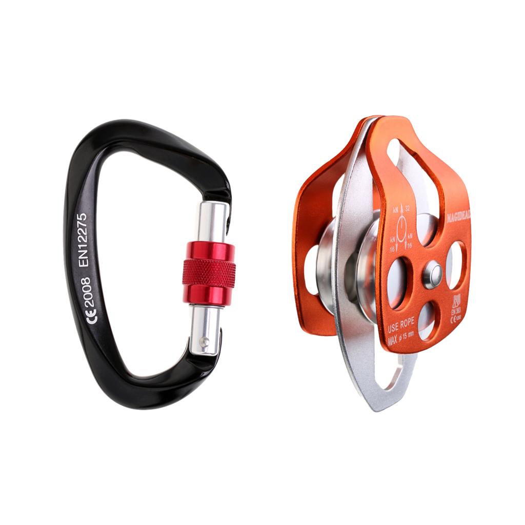 32KN Climbing pulley with 25KN D shape screw locking carabiner