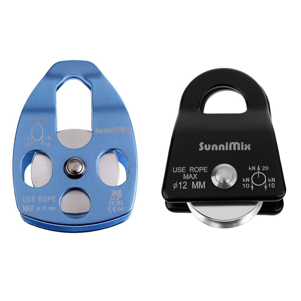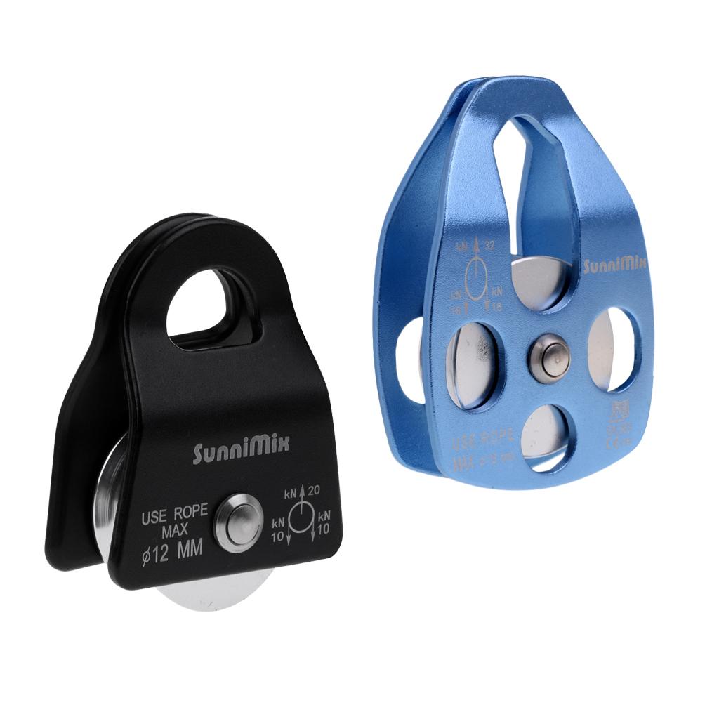 Blue 32KN single sheave pulley + black 20KN general purpose mobile pulley