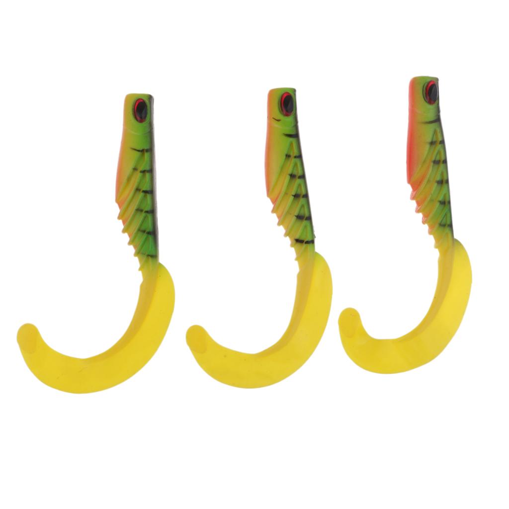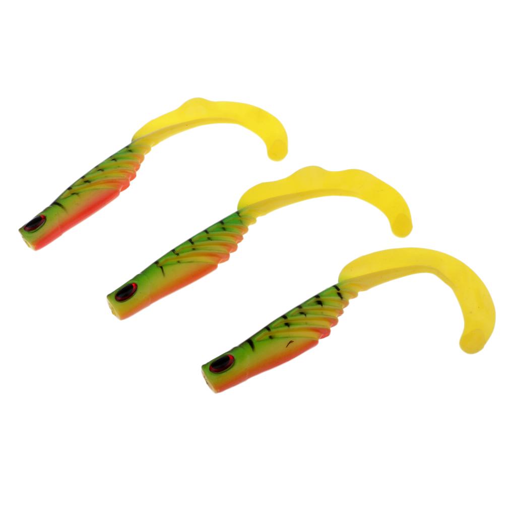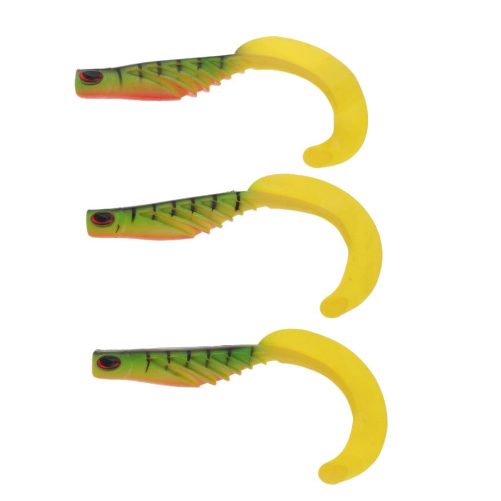 3pcs Soft Fishing Lure Baits Curly Tail Fishing Lure Simulation Bait Yellow