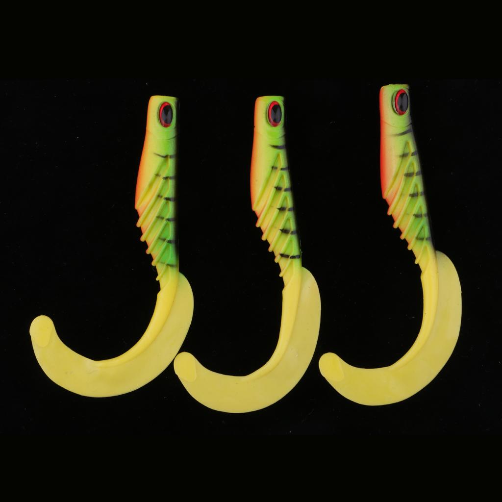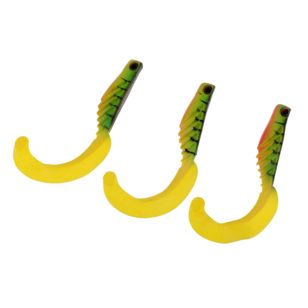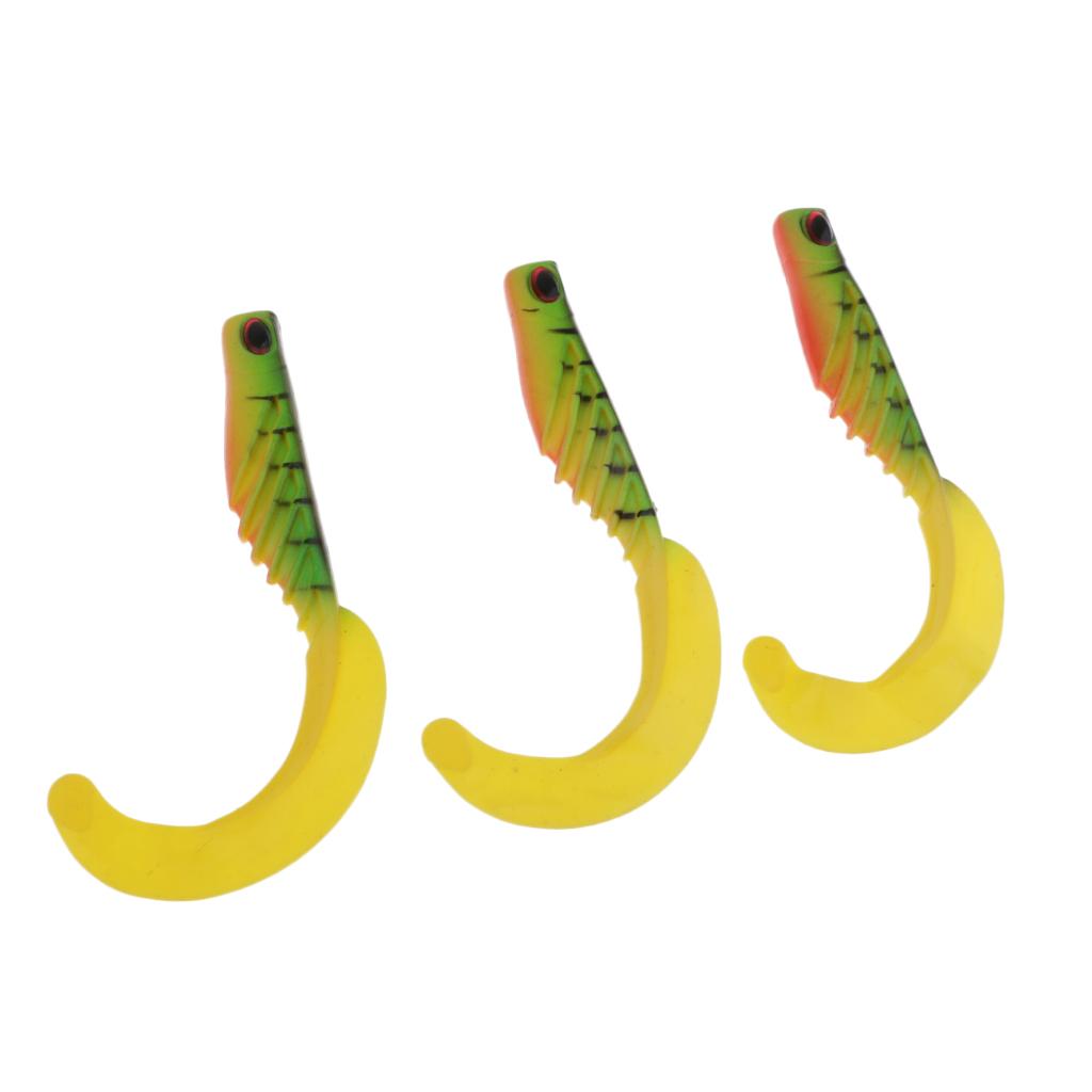 3pcs Soft Fishing Lure Baits Curly Tail Fishing Lure Simulation Bait Yellow