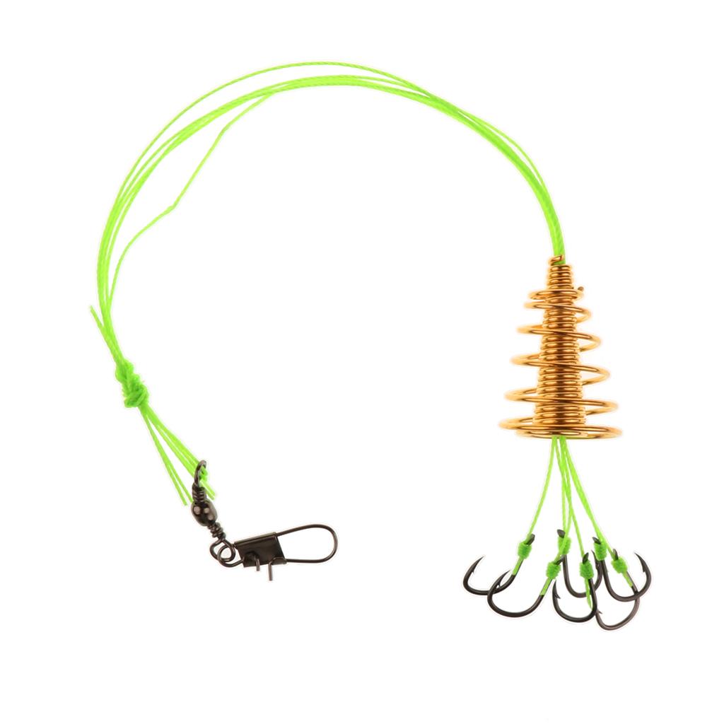Green nylon ropes and delicate barbed hooks. Avoiding line tangle, anti hanging on weed.