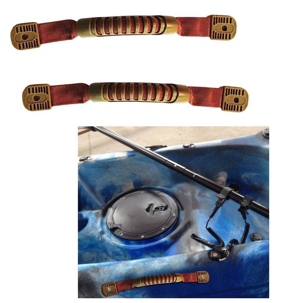 2 Pieces brown kayak carry handle and 2 pieces kayak pull handle with cord