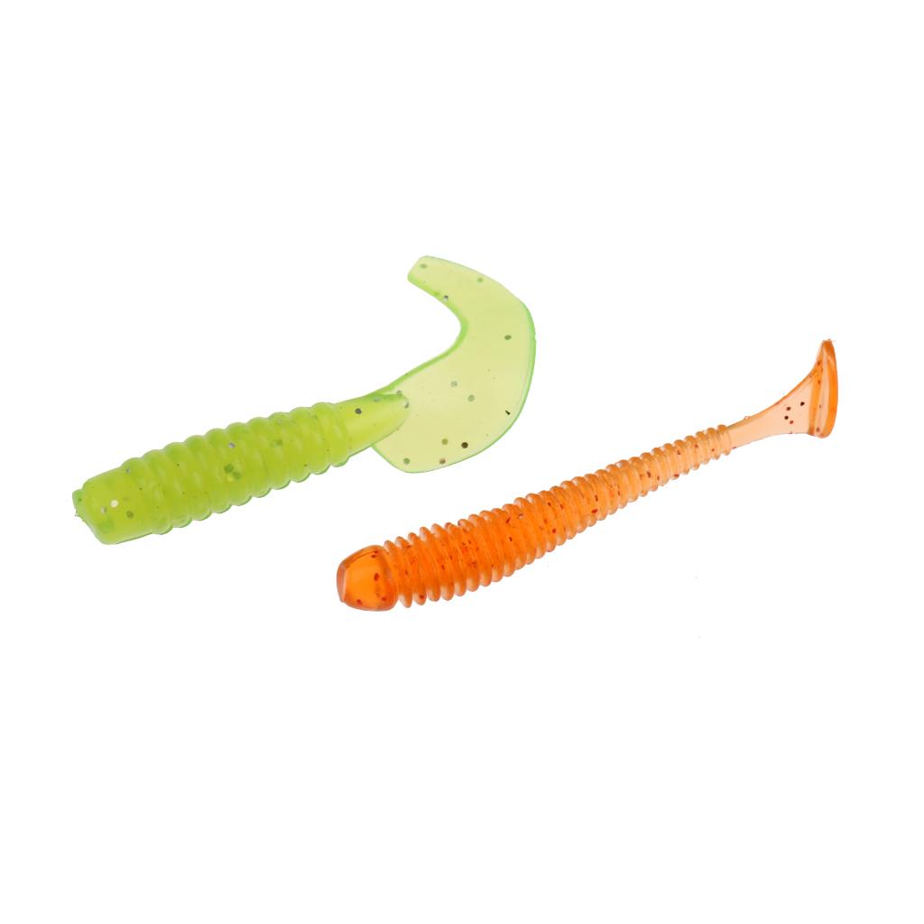 Grub worm shape attract fish to bite, bright colors to attract big fish.