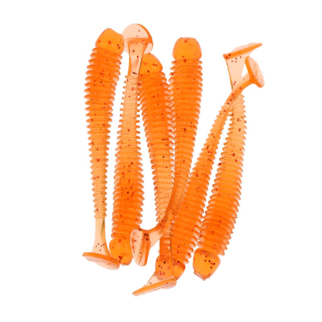 6 pieces T tail soft worm(orange, 4.7cm / 1.8inch)
