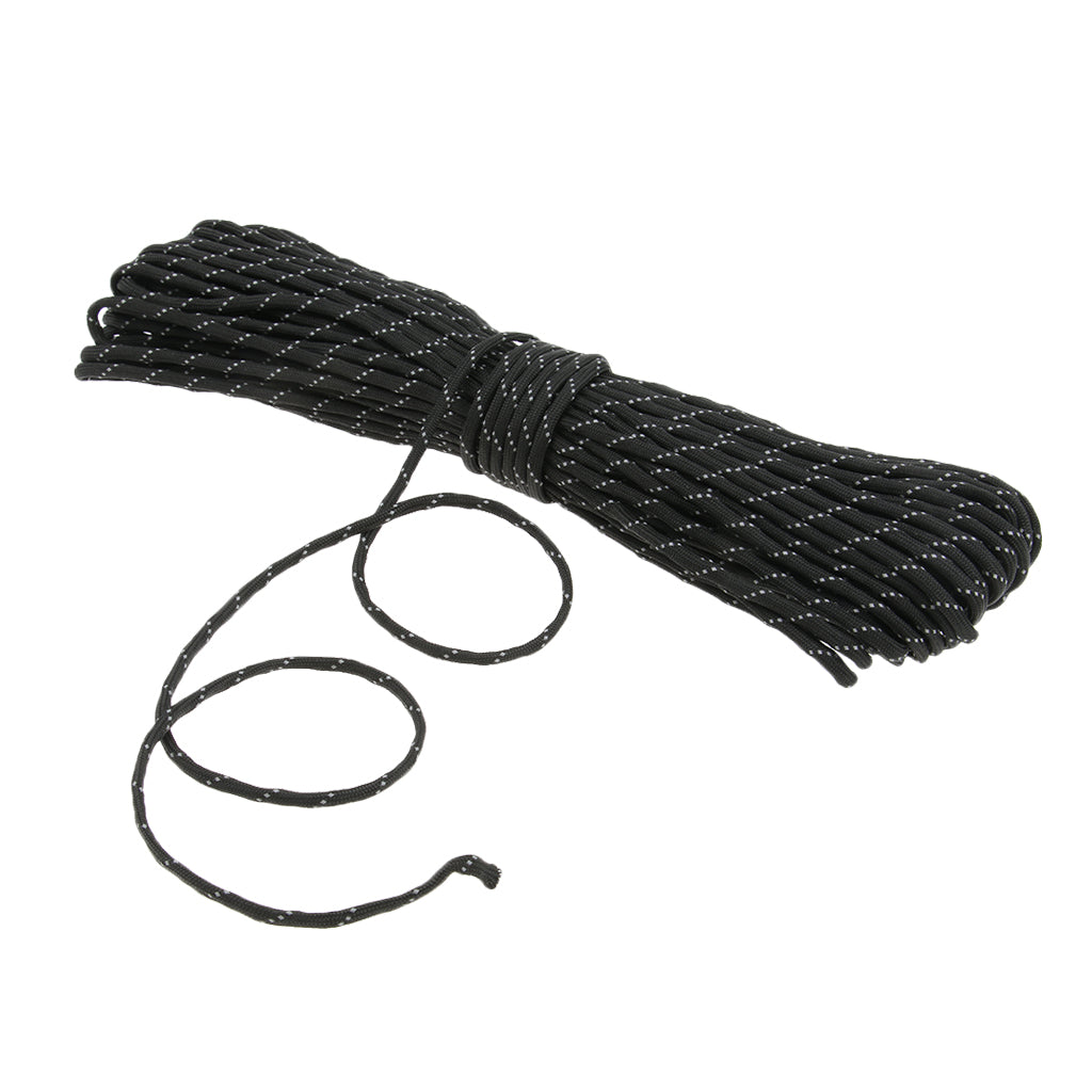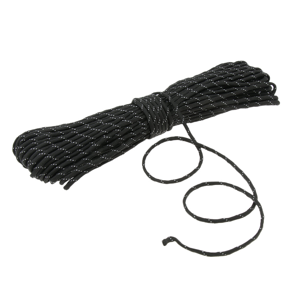 4mmx31m Reflective 9 Strand Nylon Tent Cord Canopy Awning Guy Line Black