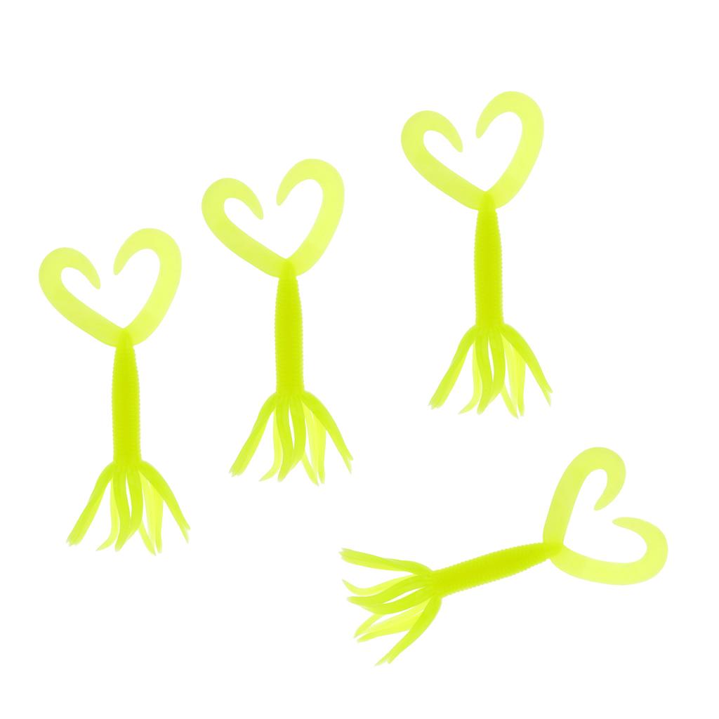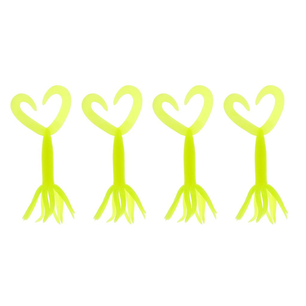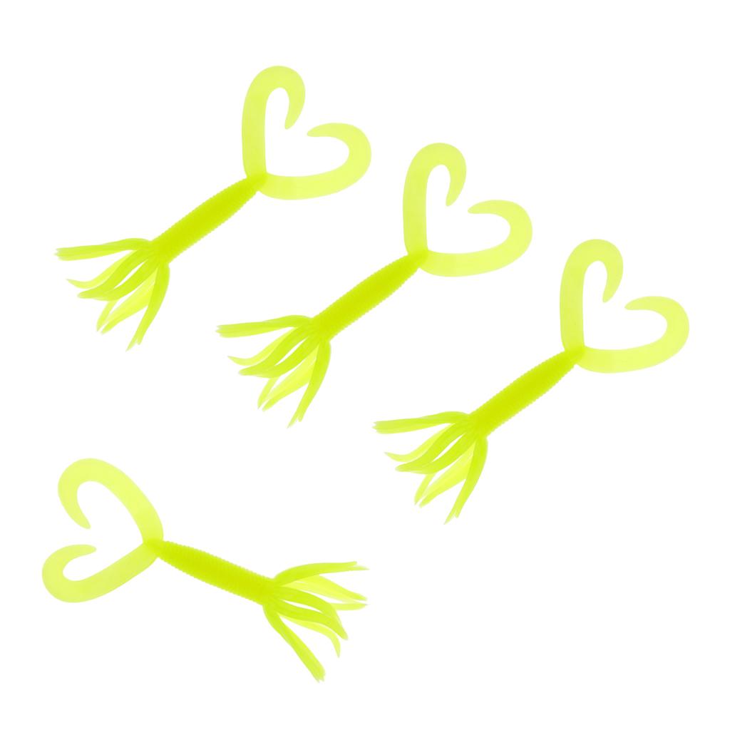 4pcs Double Tail Soft Lures Fishing Bait Maggots Grub Worm Lures Yellow