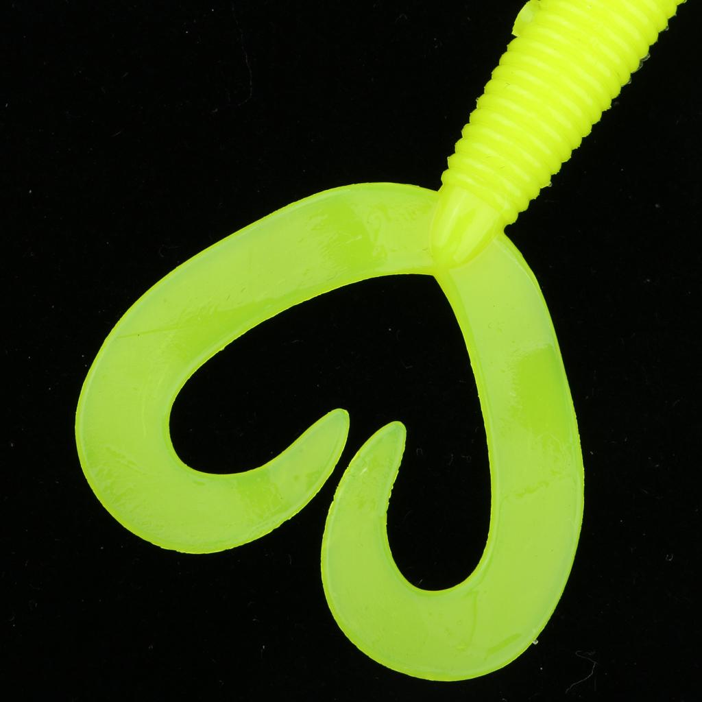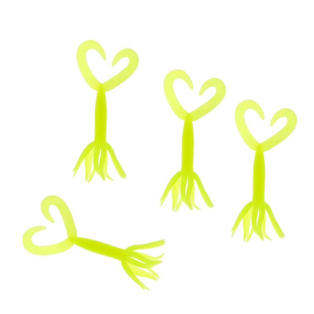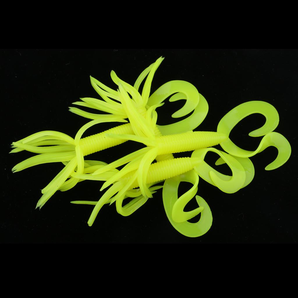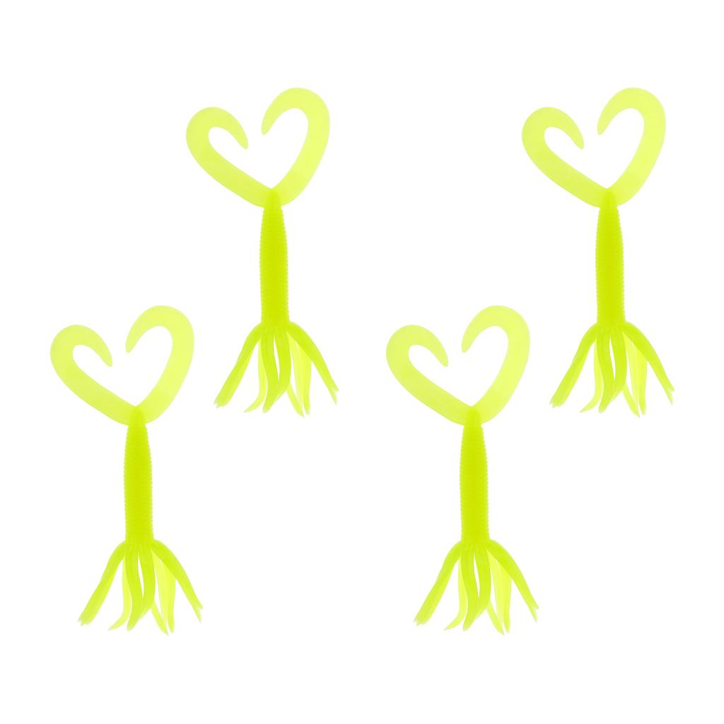 4pcs Double Tail Soft Lures Fishing Bait Maggots Grub Worm Lures Yellow