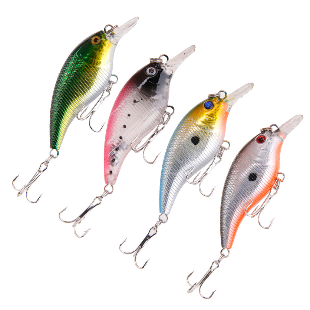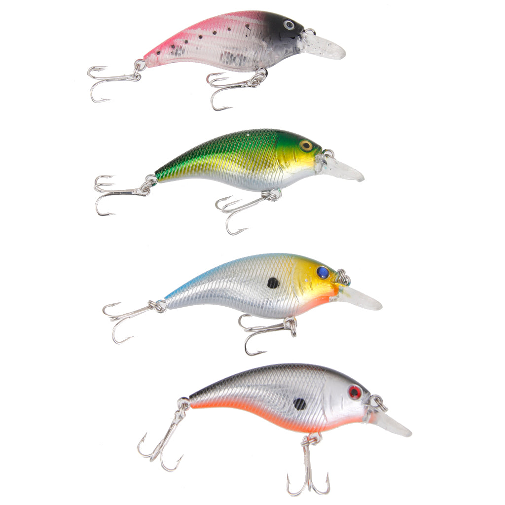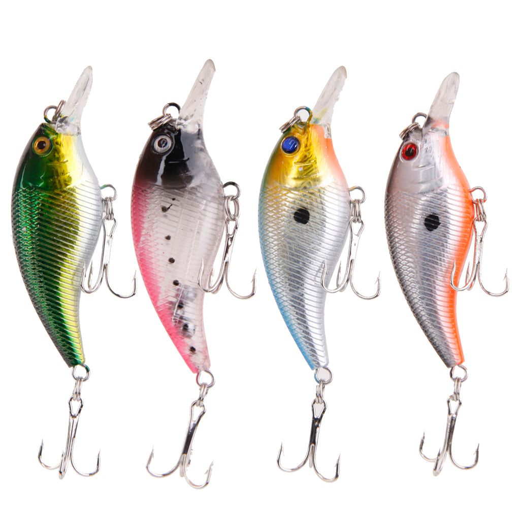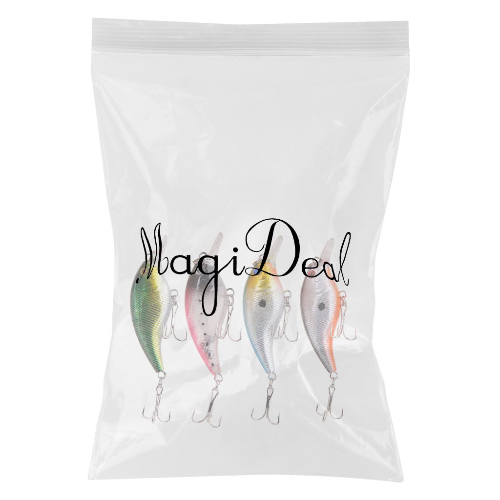 4Pcs Plastic Minnow Fishing Lures Deep Diving Fake Baits w/ Treble Hooks