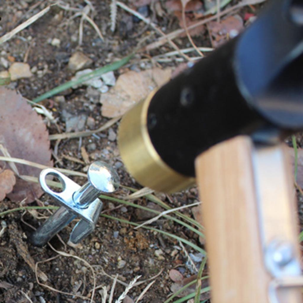 Use the hook or hole in the head of the stake for pulling the stake out of the ground with tent hammer