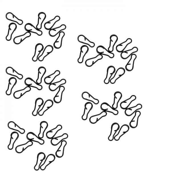Quick change clips can be attached to swivels or rings to allow quick change of hooklinks or other rig components.
