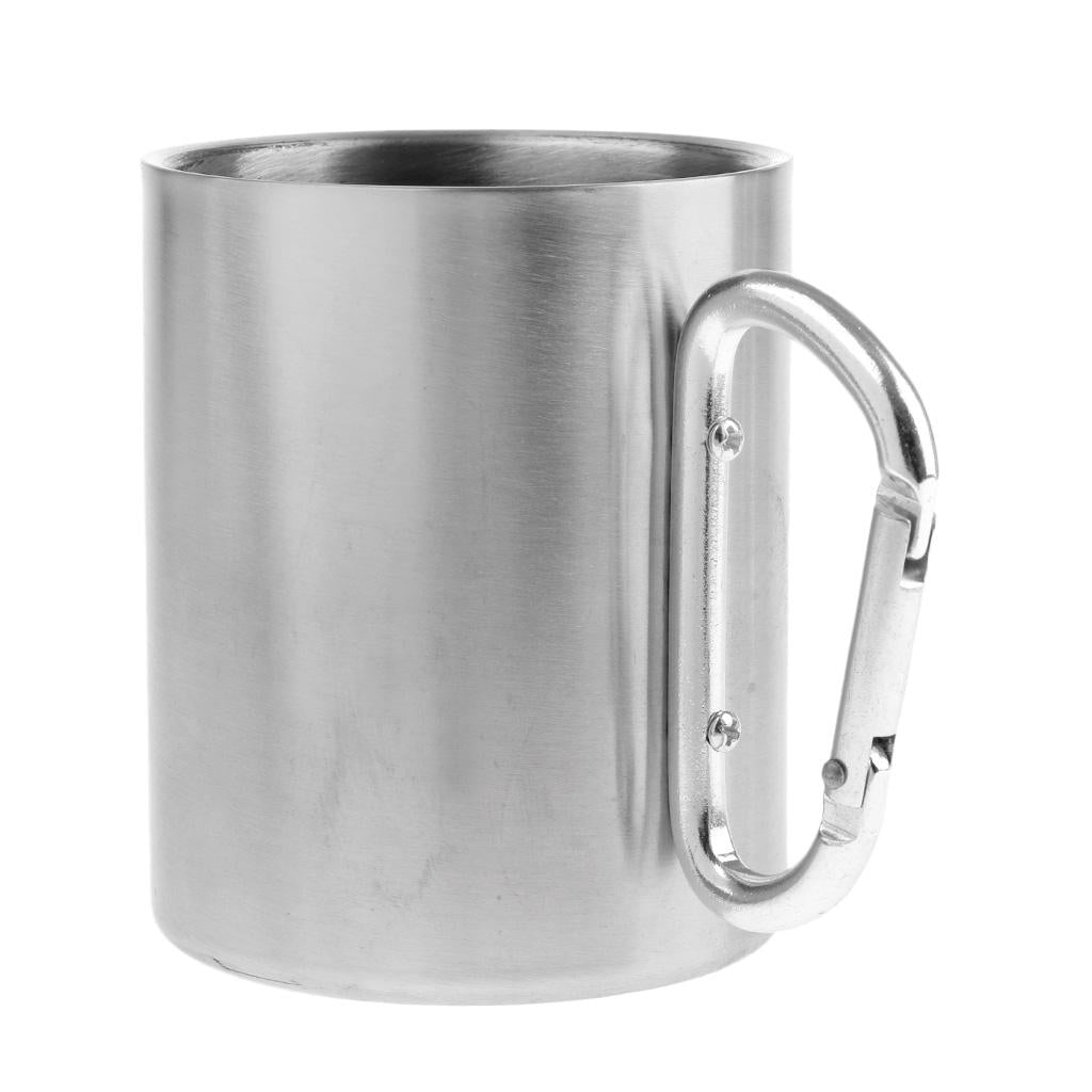 Double wall stainless steel outdoor camping cup with carabiner hook