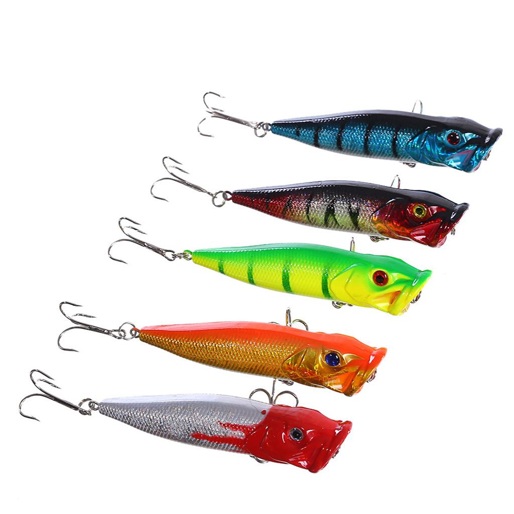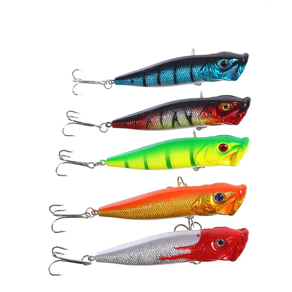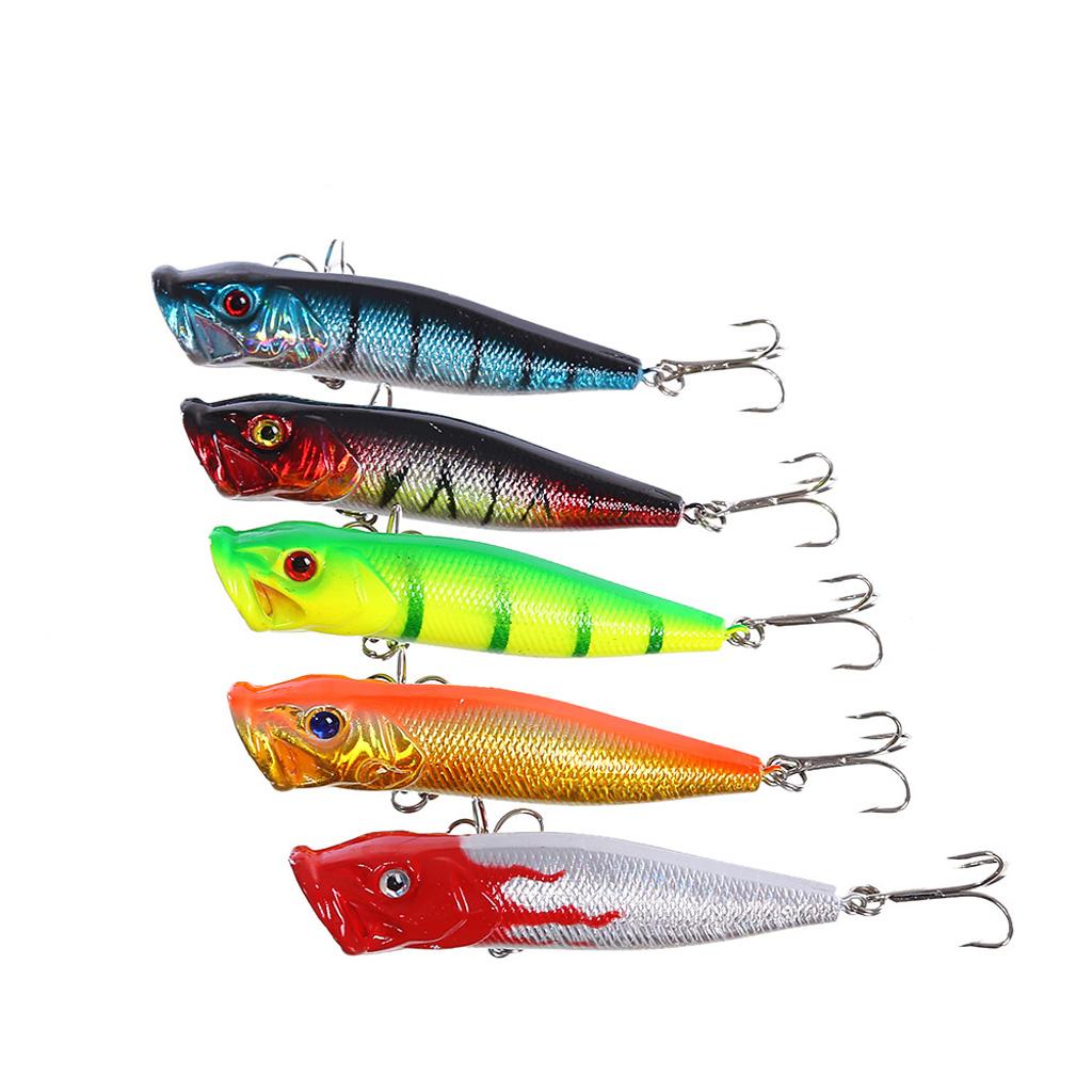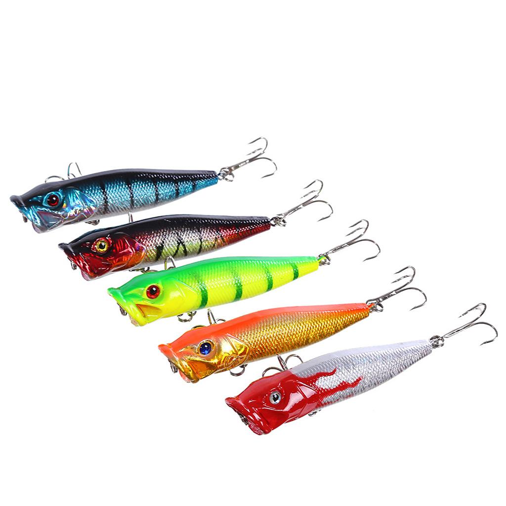 5pcs Artificial Fishing Topwater Floating Popper Lures Treble Hook Hard Bait Crankbait