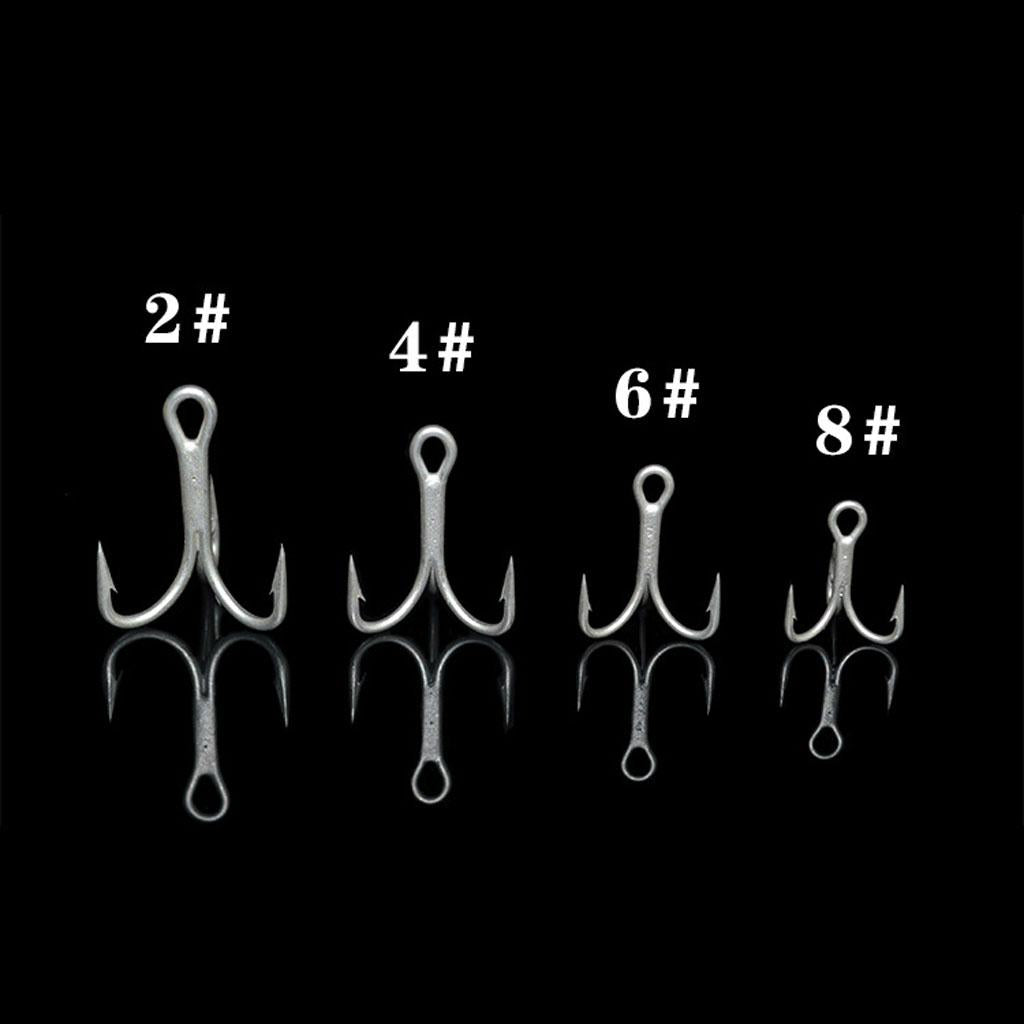 5Pcs Fishing Hooks Carbon Steel Treble Jig Hooks Fishhook 2# Silver
