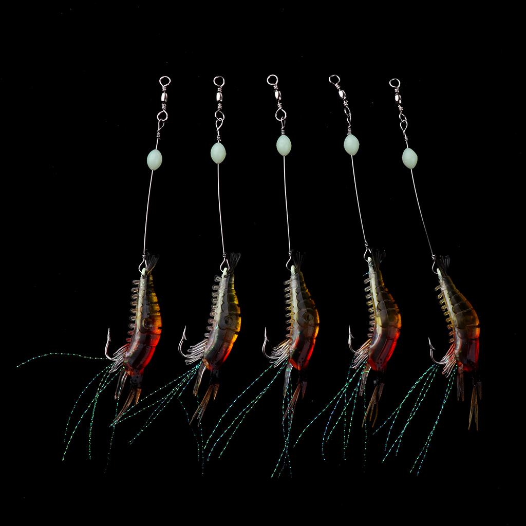 5pcs Shrimp Fishing Lure Luminous Shrimp Bait Saltwater Lures Red