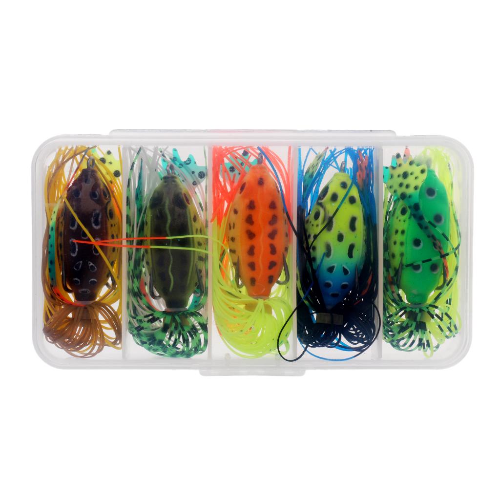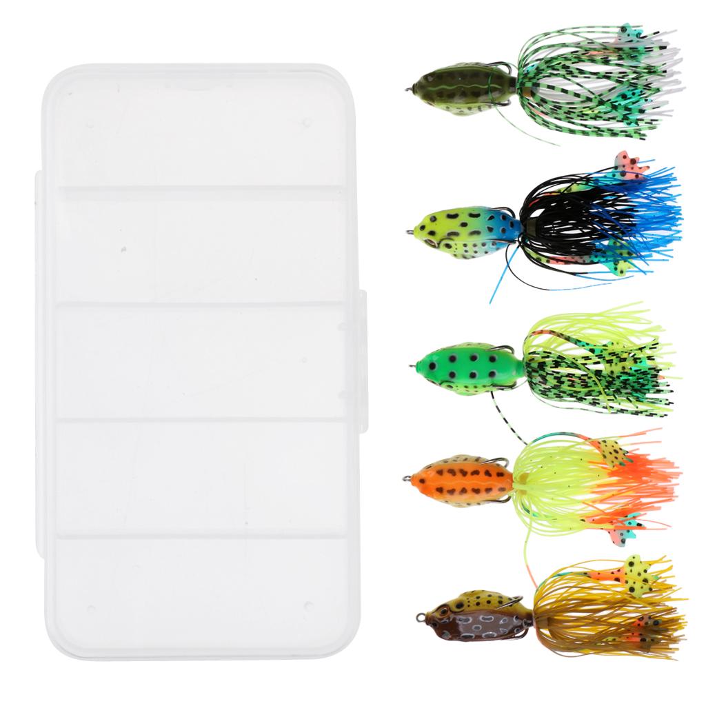 5Pcs Topwater Frog Lure Crankbait Tackle Crank Bait Bass Soft Swimbait Lures Crankbaits Baits Fishing Lures with Box