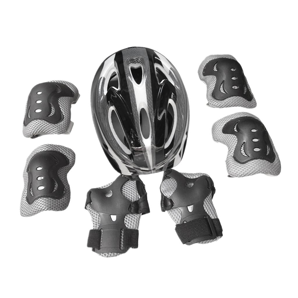 7 pieces set of sports protective gear - Elbow Pads, Knee Pads, Wrist Guards and Helmet, bring kids all-round protection
