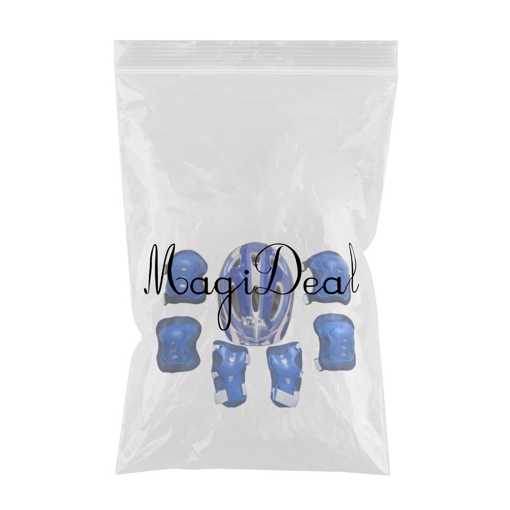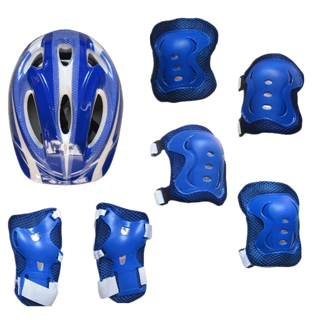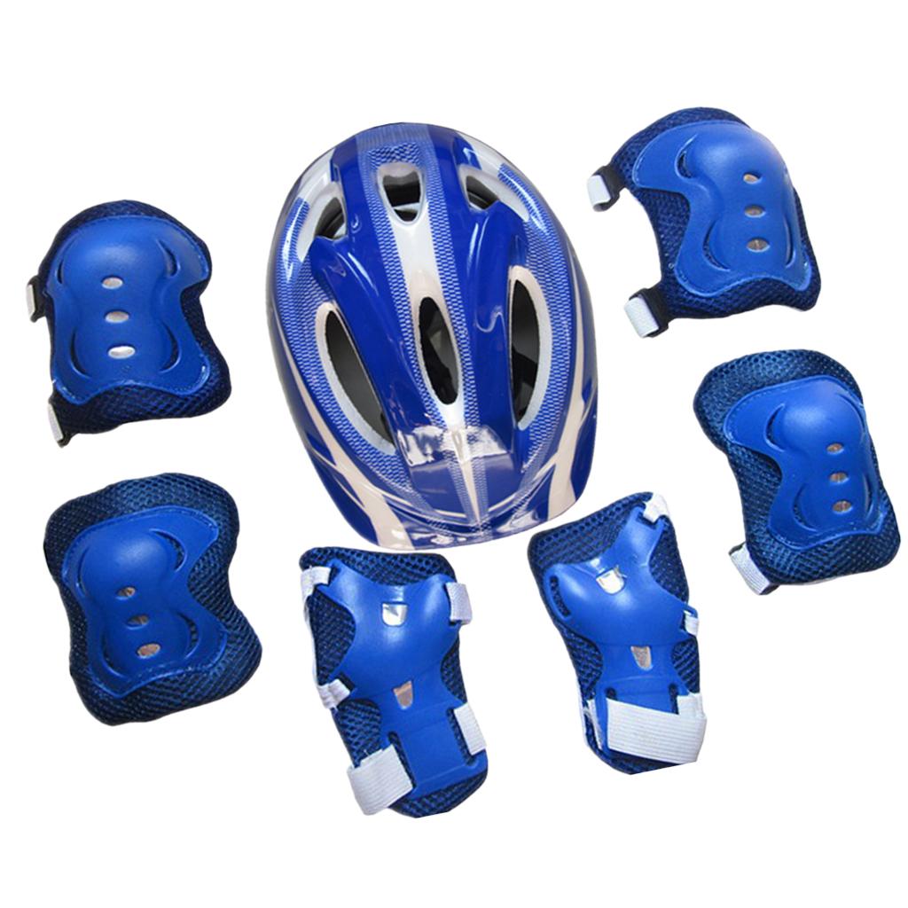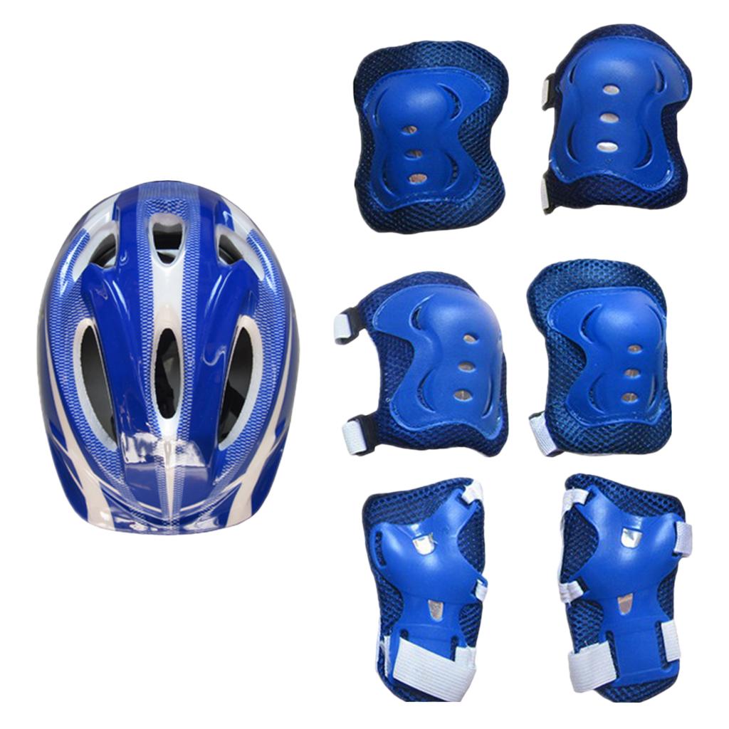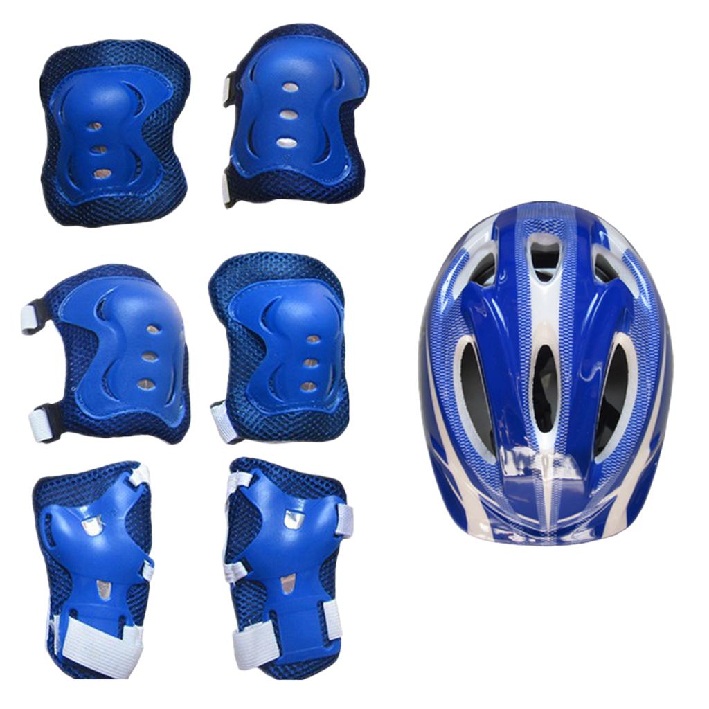 7 Pieces Kids Roller Skating Helmet Knee Elbow Wrist Pads Set dark blue