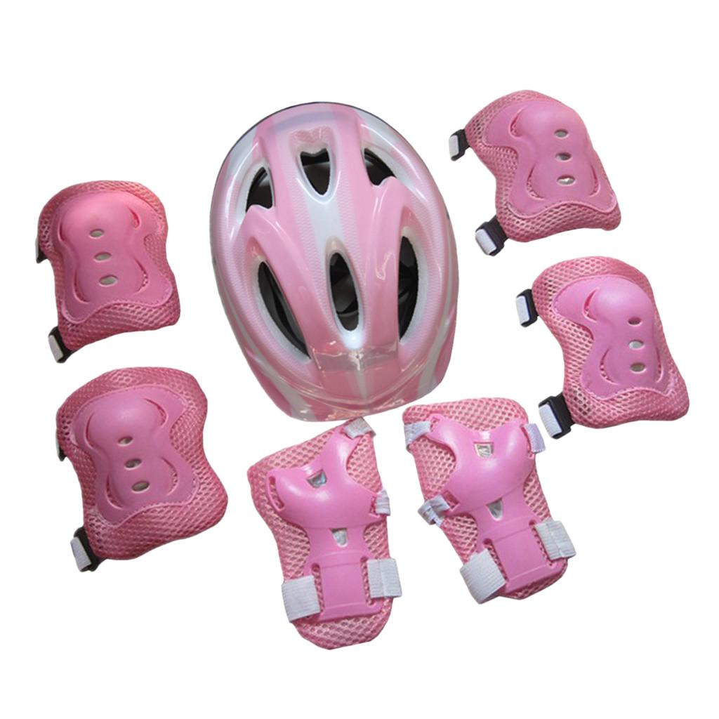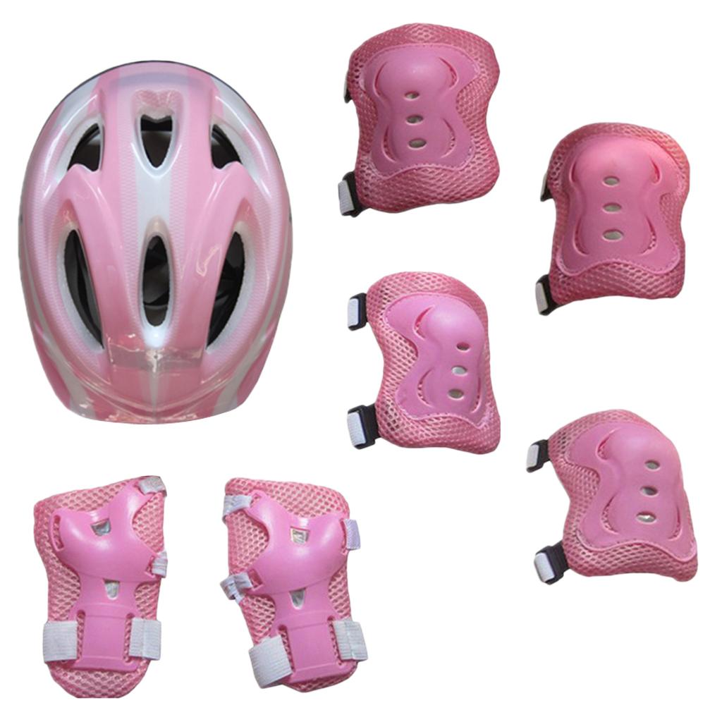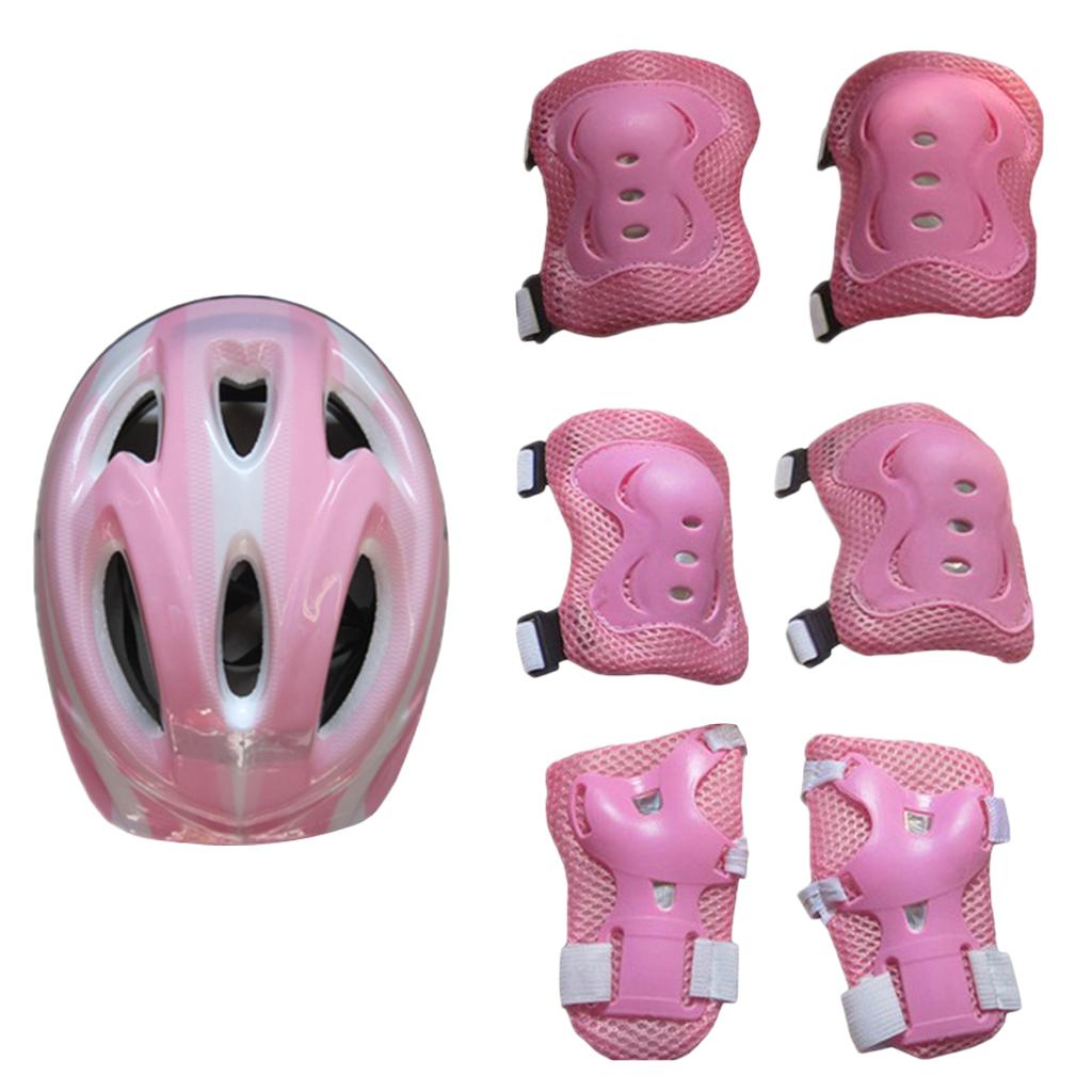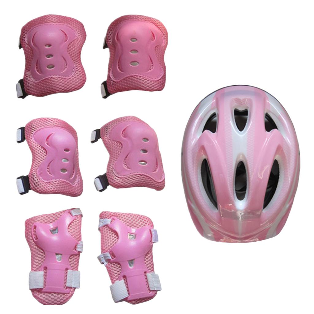 7 Pieces Kids Roller Skating Helmet Knee Elbow Wrist Pads Set pink